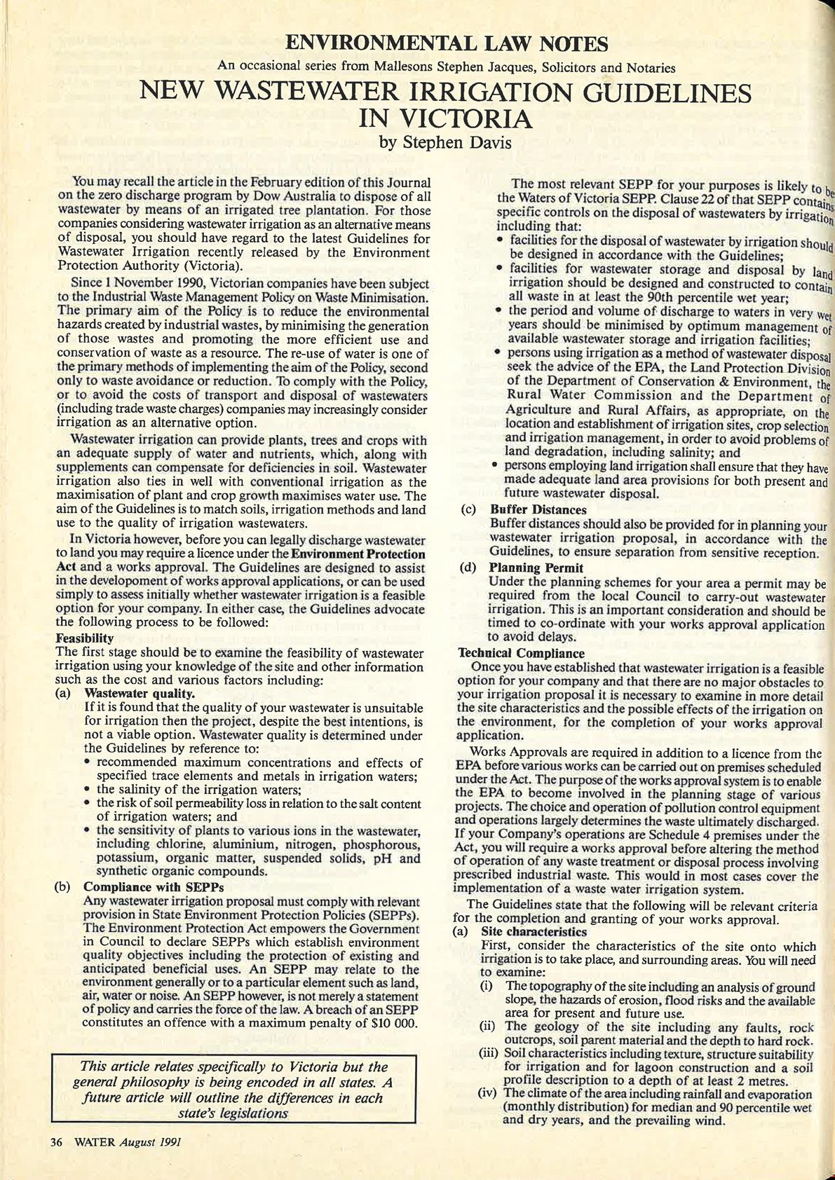 Water Journal August 1991