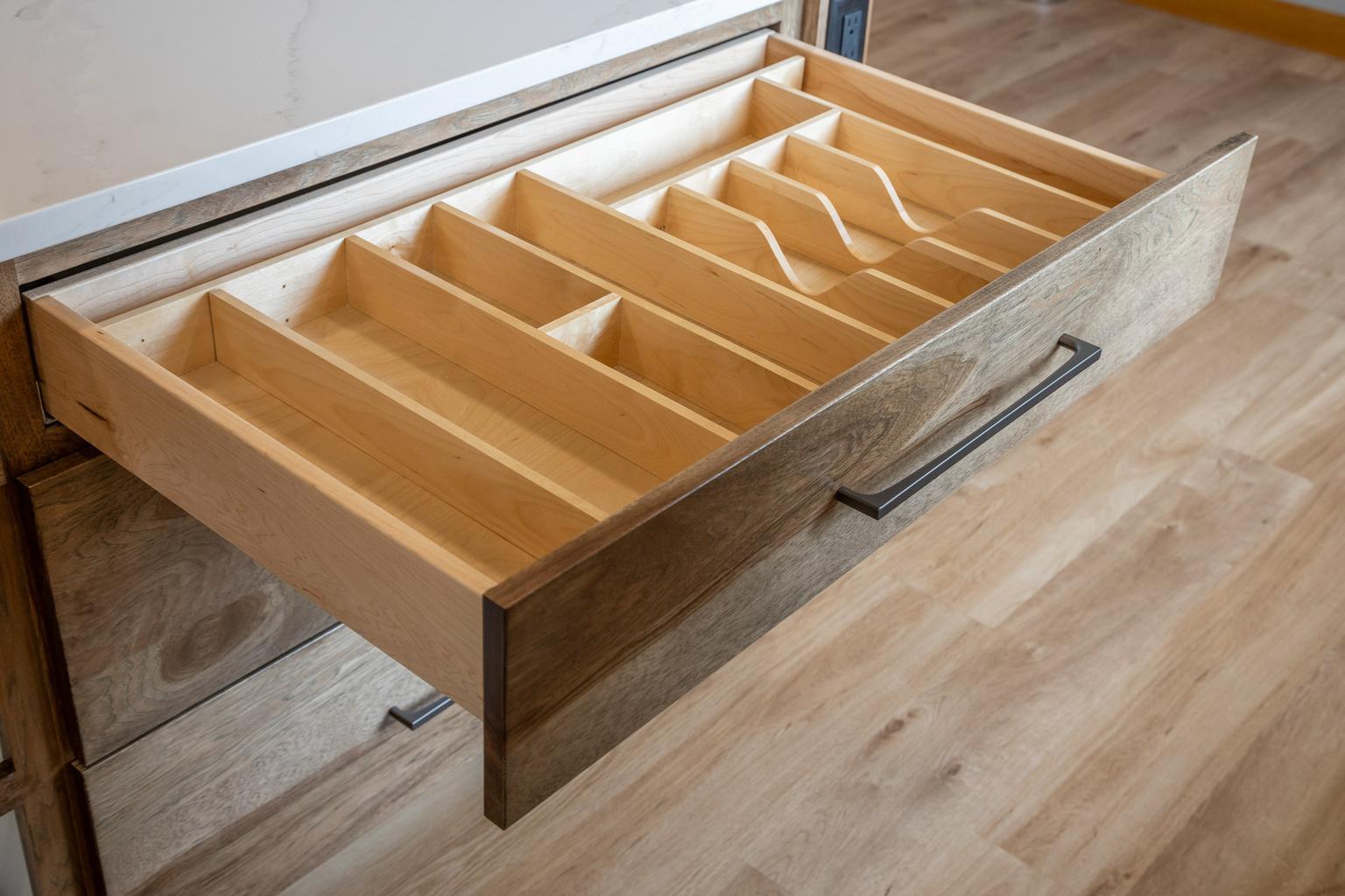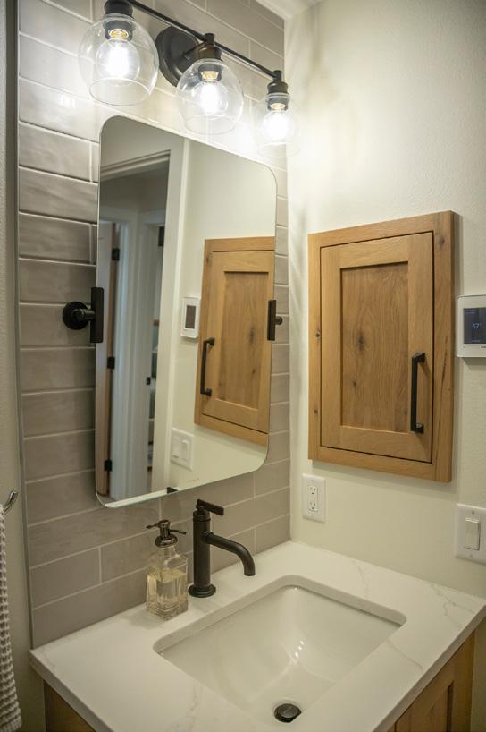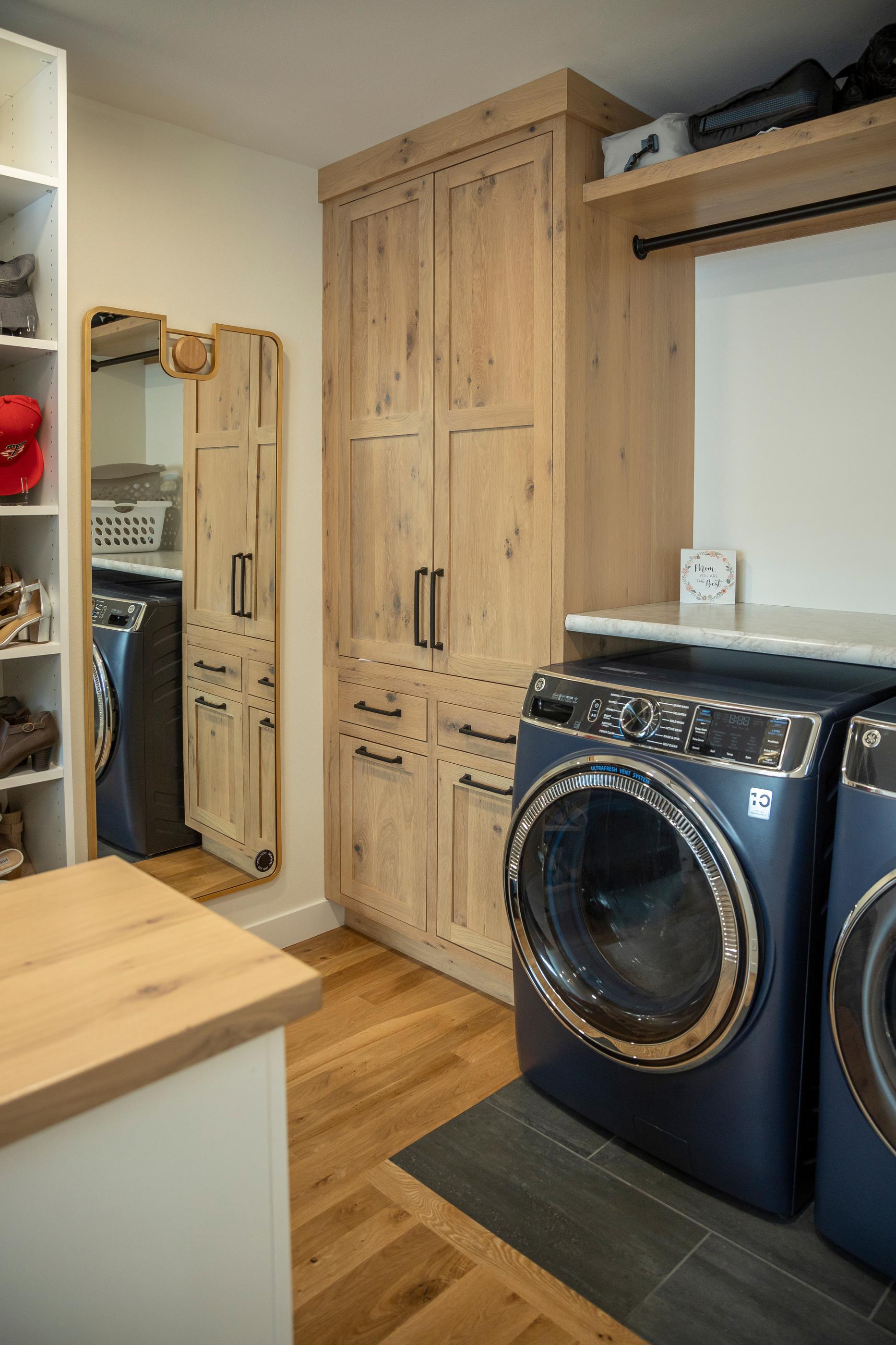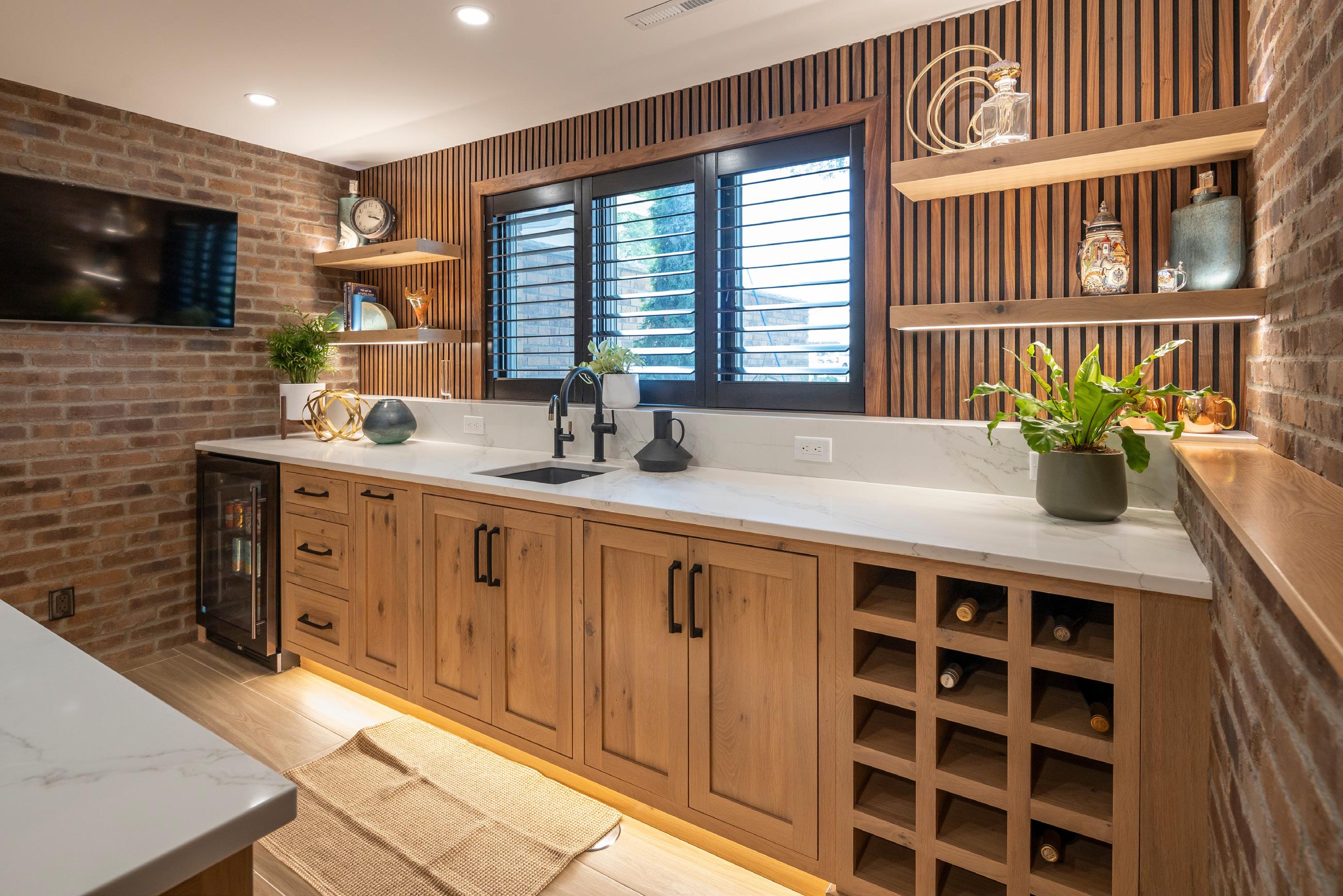 In this Signature Spaces whole home remodel, The Cabinet Authority, Inc was integral in crafting the one-of-a-kind storage elements that define the home's unique character. The designing and building of the custom white oak kitchen cabinets created the heart of this gorgeous home. The cabinet team’s expertise extended to creating bathroom vanities that combine elegance and functionality, as well as tailored solutions for the laundry room, closets, and stand-out bar area. Each cabinet and shelf is meticulously crafted to enhance the overall aesthetic, ensuring that this Signature Spaces remodel is a true reflection of the homeowners’ personal style and and functionality needs