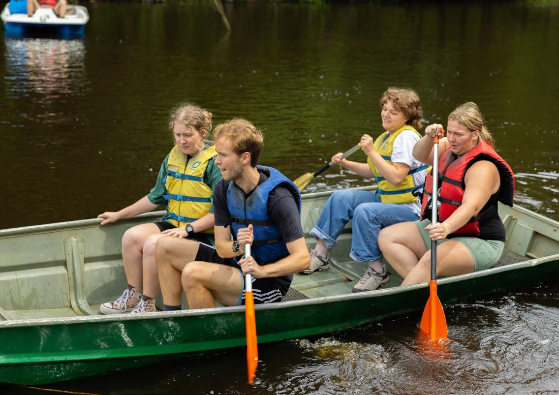 Adult Immersion Week-long Camp gives participants (age 18+) a fun camp experience with recreation and leisure activities but also immerses them in independent living where they exercise skills such as cooking, cleaning, laundry, and house care. Participants are responsible for helping with vital processes for the week including preparing meals, cleaning up after meals, maintaining their living space, etc. Participants also go into the community and build job skills in different settings.