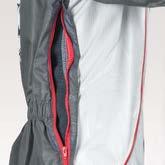 Underarm two-way zippers opening for ventilation and easy access to pant pockets.