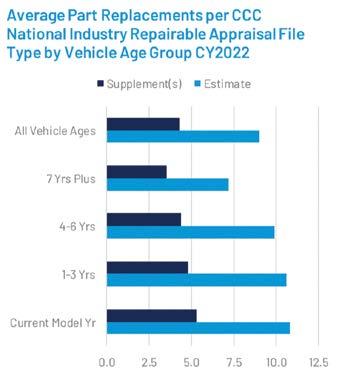 The average number of parts on a claim five years ago was nine; in 2022, it was 13. It comes down