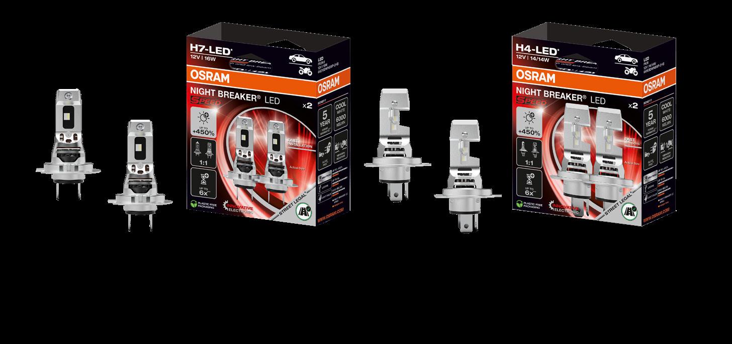 Spoločnosť OSRAM uvádza na trh novú generáciu náhradných LED žiaroviek NIGHT BREAKER LED SPEED 450 (OS 64210DWNBSP2-2HB). Najnovší model SPEED 450 je dostupný vo variantoch H4-LED a H7-LED pre celkom 531 schválených typov vozidiel a 36 motocyklov. Ide v súčasnosti o jediné legálne náhradné LED svetelné zdroje, ktoré majú rovnaké rozmery (1:1) ako klasické halogénové žiarovky a ich výmena je teda kus za kus, bez nutnosti prídavných redukcií, adaptérov alebo krytiek. Nájdete ju, samozrejme, aj v ponuke LKQ.