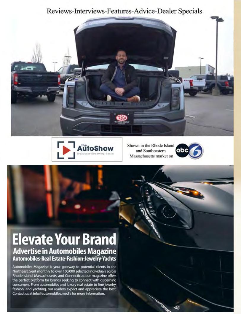 The digital edition is sent to over 100,000 consumers and subscribers across Rhode Island, Massachusetts, and Connecticut, and is also available on our website, Automobiles.media. This timely delivery allows us to present the latest dealer specials while they are still relevant and actionable, alongside the reviews, stories, and advertisements featured in the printed version. We believe this dual-format approach provides the best of both worlds—detailed, beautifully printed content and the latest digital updates to help you make informed automotive purchase and service decisions.