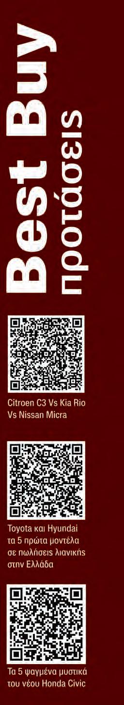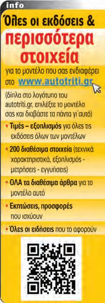3 TEST CENTER: Τα καλύτερα σε αποσκευές (έως 20.000 €) 76 ΠΕΡΙΕΧΟΜΕΝΑ Iδιοκτησία: AutoΤρίτη Α.Ε. ISSN: 1108-779X Αθήνα: Λεωφ. Αμαρουσίου 14, Τ.Κ.14122, Ν. Ηράκλειο, Τηλ. Κέντρο: 211 1085500, Fax: 211 1085528 e-mail: info@autotriti.gr https://twitter.com/autotritigr https://plus.google.com/+autotriti www.facebook.com/autotriti www.autotriti.gr ΤΕΥΧΟΣ 1/2023 ΝΕΑ ΚΑΙ ΕΠΙΚΑΙΡΟΤΗΤΑ 6 Rumors: Όλα τα μυστικά και τα πλάνα της αυτοκινητοβιομηχανίας 8 Νέα Διεθνή: Τα σημαντικότερα μοντέλα και ειδήσεις που βγήκαν αυτόν τον μήνα 12 Νέα Αγοράς: Προσφορές και τιμές νέων μοντέλων 14 Νέα Ρεπορτάζ: Η επικαιρότητα από την Ελλάδα 16 Αφίξεις: Πότε έρχονται τα νέα μοντέλα 18 Επιστολές: Επικοινωνία με τους αναγνώστες ΠΡΩΤΕΣ ΕΠΑΦΕΣ ΚΑΙ ΔΟΚΙΜΕΣ 20 Οδηγούμε: Νέο Ford Bronco 24 Δοκιμή: