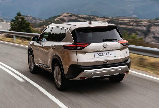 5θέσια διάταξη μπορεί να μεταφέρει έως και 585 λίτρα αποσκευών. Ήπια υβριδικό με 163 άλογα και υβριδικό με έως 213 ίππους Η πλατφόρμα CMF-C δίνει την δυ νατότητα στο X-Trail να συνδυαστεί με δύο εξηλεκτρισμένα κινητήρια σύνο λα και έτσι γίνεται αυτή την στιγμή το μόνο 7θέσιο SUV της κατηγορίας του με τέτοιους κινητήρες. Στη βάση της γκάμας βρίσκουμε έναν ήπια υβριδι κό (12V) 1.500άρη turbo κινητήρα με ισχύ 163 άλογα και 300 Nm ροπής που συνδυάζεται με αυτόματο κιβώτιο Xtronic, το οποίο μεταφέρει την κίνη ση μόνο στους μπροστινούς τροχούς. Το 0-100 χλμ./ώρα γίνεται σε 9,6 δευ τερόλεπτα και η μέγιστη τελική φτάνει τα 200 χλμ./ώρα. Η νέα γενιά θα προσφέρεται και σε υβριδική έκδοση e-Power που αποτελείται από τον 1.500άρη turbo κινητήρα βενζίνης που θα χρησι μοποιείται αποκλειστικά για να παράγει ηλεκτρική ενέργεια, μια γεννήτρια, ένα μετατροπέα και έναν ηλεκτροκινητήρα απόδοσης 150kW που είναι υπεύθυνος για να κινεί τους μπροστινούς ή και τους τέσ σερις τροχούς όταν το X-Trail συνδυάζεται με το ηλεκτρικό σύστημα 4κίνησης e-4ORCE. Στην δικίνητη έκδοσή του, το υβριδικό X-Trail απο δίδει 204 άλογα και κάνει το 0-100 χλμ./ώρα σε 8 δλ. ενώ όταν κινεί ται τετρακίνητα, η ισχύς του φτάνει τα 213 άλογα, με το 0-100 χλμ./ώρα να πετυχαίνεται σε 7,0 δλ. (7,2 δλ. το 7θέσιο).