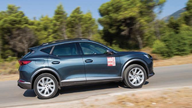 ασμό με την γνωστή «μύτη της τί γρης» να καταλαμβάνει όλο το πλάτος ενσωματώνοντας μία πο λυσύνθετη κυψελοειδή γρίλια. Το στοιχείο ωστόσο που κάνει τη δια φορά, είναι τα λεπτά τύπου μπού μερανγκ LED φώτα ημέρας που δι αχωρίζουν τους προβολείς από τη γρίλια, δίνοντας μια φουτουριστι κή υπόσταση. Το σπορτίφ στοιχείο προβάλλεται στο πίσω μέρος με τις αρκετές ακμές και την αεροτομή. Εσωτερικό - Χώροι: Μοντέρνο Formentor, hi-tech Sportage Προσαρμοσμένη στις απαιτήσεις της εποχής, η καμπίνα των δύο οικογενειακών SUV πληροί και με το παραπάνω τις hi-tech ανάγκες. Ελαφρώς μεγαλύτερη είναι η οθόνη αφής του Formentor (10 έναντι 8 ιντσών), το οποίο αφήνει μία μοντέρνα αίσθηση χάρη στο flatbottom τριάκτινο τιμόνι τις μπρονζέ λεπτομέρειες σε διάφορα σημεία τουΣτοταμπλό.εσωτερικό, το Kia Sportage προσφέρει σύγχρονο σχεδιασμό καμπίνας με το στοιχείο της διχρω μίας να διχοτομεί το ταμπλό. Βέβαια η μεγάλη αναβάθμιση έρχεται στον τομέα της τεχνολογίας, καθώς κυρίαρχο στοιχείο της καμπίνας είναι η υπερσύγχρονη καμπύλη (curved) οθόνη αφής 12,3 ιντσών που συνδυάζεται με ψηφιακό πίνακα οργάνων επίσης 12,3 ιντσών, από τη μεσαία έκδοση και πάνω (η βασική έκδοση έχει πίνακα οργάνων 4,2 ιντσών και οθόνη αφής 8 ιντσών). Στο τομέα των χώρων τα δύο μοντέλα μπορούν να μεταφέρουν ακόμη και 5 ενήλικες, με το Formentor να προσφέρει περισσότερο χώρο για τα γόνατα και το Sportage σημαντικά πιο φαρδύ πίσω κάθισμα και περισσότερο αέρα στο κεφάλι. Το SUV της Kia έχει και πολύ μεγαλύτερο πορτ-μπαγκάζ, με 562 λίτρα έναντι 450 του ανταγωνιστή του. CUPRA Formentor και Kia Sportage έχουν τελείως διαφορετικό στυλ, αλλά ξεχωρίζουν λόγω σχεδίασης και όχι μόνο. Ας δούμε ποια είναι τα ατού τους, στις βασικές εκδόσεις τους με τα 150 άλογα. Το εσωτερικό του Kia Sportage σε κερδίζει με την ποιότητα των υλικών και τη συναρμογή. Ο μοντέρνος ο διάκοσμος και το όμορφο φινίρισμα ολοκληρώνουν την εικόνα. Σχεδίαση, εικόνα εσωτερικού, εξοπλισμός ασφάλειας, ποιότητα κύλισης, άνεση ανάρτησης, 5 χρόνια δωρεάν service, 7 χρόνια εγγύηση Αίσθηση τιμονιού (κυρίως σε υψηλές ταχύτητες) Kia Sportage 1,6 T-GDI 150 PS 48V iMT το οποίο βοηθάει τόσο στην κατανάλωση, όσο και στην καλύτερη απόκρισηχαμηλά.από Κυβισμός (κ.εκ.) 1.598 Κύλινδροι/Βαλβίδες 4/16 Τροφοδοσία Άμεσος ψεκασμός+turbo,mildhybrid48V Ισχύς (ίπποι/σ.α.λ.)*κινητήρα 150/5.500 Ροπή (Nm/σ.α.λ.)*κινητήρα 250/1.500-4.000 Start/Stop NAI Βάρος με οδηγό (κιλά)* 1.561 Κινητήρας Μέση εργοστασιακή 6,5 Μέση Δοκιμής 8,6 Ρεζερβουάρ (λτ.) 54 *Εργοστασιακές μετρήσεις Εκπομπές CO2 (γρ./χλμ.)* 147 Τεχνικά χαρακτηριστικά Kia Sportage 1,6 T-GDI 150 PS 48V iMT Eπιδόσεις189 9,3΄΄ Τελική(χλμ./ώρα)ταχύτητα Κατανάλωση (λτ./100 χλμ.) 60-100 χλμ./ώρα (δλ.) 7,4/9,7 80-120 χλμ./ώρα (δλ.) 10,4/13,8 Έκδοση Dynamic Τιμή από (ευρώ) 30.490 ESP l Σύστημα Αυτόματου Φρεναρίσματος l Αερόσακοι 7 Ηλ. παράθυρα Ε/Π l/l Κεντρικό κλείδωμα/Τλχ l/l Ηλεκτρικοί καθρέπτες/Αναδ. l/l Υποβοήση/ Ρύθμιση τιμονιού l/l Κλιματισμός l (3 ζωνών) Ηχοσύστημα/ l/έγχρωμη Οθόνη αφής 8’’ Cruise control l Ζάντες αλουμινίου l 17’’ Προβολείς ομίχλης l Φώτα ημέρας l LED Εγγύηση μηχανικών μερών 7 χρόνια l: στάνταρ, m: προαιρετικός, -: δε διατίθεται Εξοπλισμός - τιμή 57
