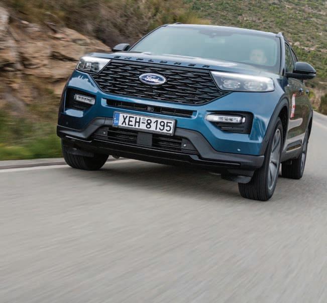 Περνώντας στο PHEV σύστημα του θηριώδους Explorer, συνδυά ζει ένα high-tech, 3λιτρο turbo V6 Ecoboost μοτέρ 363 ίππων με έναν ηλεκτροκινητήρα 102 ίππων και μπαταρία 13,6 kWh (10,3 kWh είναι οι χρησιμοποιούμενες), η οποία και εξασφαλίζει μια θεωρητική ηλεκτρι κή αυτονομία της τάξης των 42 χι λιομέτρων στο Explorer (WLTP). Το εν λόγω σύνολο συνδυάζεται με αυ τόματο κιβώτιο 10 σχέσεων και τε τρακίνηση, τη στιγμή που η συνδυα στική ισχύς είναι 457 άλογα με 825 Nm ροπής!Τομεγαλεπήβολο SUV στην πραγματικότητα δύσκολα θα ξεπε ράσει τα 30 χιλιόμετρα ηλεκτρικής αυτονομίας, ωστόσο είπαμε πως το Plug-in σύστημα που διαθέτει έχει ως προτεραιότητα τις επιδόσεις. Αυ τό γίνεται άμεσα αντιληπτό αφού όταν ο οδηγός αποφασίσει να «βυ θίσει» το πόδι στο πεντάλ του γκα ζιού και παρά τους σχεδόν 2,5 τό νους του, το Explorer επιταχύνει σαν βολίδα. Για να το εξηγήσουμε και με αριθμούς, τα ηλεκτρονικά μας όργα να κατέγραψαν 5,6 δλ. για τα 0-100, 2,8 δλ. για τα 60-100 και 3,4 δλ. για τα 80-120 χλμ./ώρα, νούμερα που θυμίζουν περισσότερο «καυτό» χά τσμπακ, παρά ένα XL SUV που μπο ρεί να φιλοξενήσει ακόμα και 7 επι βάτες στο εσωτερικό του! Σε θέμα κατανάλωσης όσο υπάρχει μπατα ρία και με δεδομένη την ανάκτηση ενέργειας στο φρενάρισμα ή την κύ λιση χωρίς γκάζι, η κατανάλωση εί ναι από μηδενική έως 5 λτ./100 χλμ. το πολύ, όταν όμως στερέψει η ηλε κτρική ενέργεια και δεν κινηθεί με ECO πρόγραμμα και μεγάλη προσο χή στο γκάζι η μέση κατανάλωση γί νεται υπερδιπλάσια. Σε νορμάλ συν θήκες δεν ξεπερνά πάντως τα 9,5 λτ./100 χλμ.. δοκιμή μας με μια πλήρη φόρτιση και ECO λειτουργία καταφέραμε μέχρι και 70 χλμ. Δηλαδή κινηθή καμε με μηδενική κατανάλωση και μάλιστα σε ρεαλιστικές ταχύτητες (έως 135 χλμ./ώρα). Μετά και με δεδομένη τη συνεχόμενη ανάκτη ση ενέργειας κατά το φρενάρισμα ή το άφημα του γκαζιού και τη δυ νατότητα φόρτισης από τον κινητή ρα, η μέση κατανάλωση στη διάρ κεια της δοκιμής δεν ξεπέρασε τα 4,0 λτ./100 χλμ. Με μπαταρία και χωρίς ιδιαίτερη προσοχή η κατα νάλωση ήταν ανάμεσα στα 2,5-3,5 λτ./100 χλμ, δείγμα πως το Plug-in υβριδικό σύστημα του Kuga πετυ χαίνει απόλυτα τον στόχο του για κατανάλωση στα… τάρταρα και μέ γιστη οικονομία! Το Explorer PHEV έχει επιδόσεις βολίδας Συντάκτης:BασίληςΚασιμάτης Το PHEV Explorer επιταχύνει από στάση στα 100 χλμ./ώρα σε 5,6 δευτερόλεπτα. 457 άλογα και 825 Nm ροπής διαθέτει το θηριώδες Ford Explorer. Κατανάλωση ανάμεσα στα 2,5-3,5 λτ./100 χλμ, πέτυχε το Plug-in υβριδικό οικογενειακό SUV της Ford. Το PHEV σύστημα του Explorer, συνδυάζει 3λιτρο turbo V6 Ecoboost μοτέρ με έναν ηλεκτροκινητήρα και μπαταρία 13,6 kWh. 83 Βενζινοκινητήρας: 2,5 λτ. Atkinson, 152 PS Ηλεκτροκινητήρας: 132 kW Συνδυαστική ισχύς: 225 PS Μπαταρία: 14,4 kW Πραγματική κατανάλωση: 2,5 έως 4 λτ./100 χλμ. Πραγματική αυτονομία (EV): 70 χλμ. 0-100 χλμ./ώρα: 8,9 δλ. Kuga PHEV ΤΕΧΝΙΚΑ Βενζινοκινητήρας: V6, turbo, 363 PS Ηλεκτροκινητήρας: 102 PS Συνδυαστική ισχύς: 457 PS Μπαταρία: 13,6 kW Πραγματική κατανάλωση: 5 έως 9,5 λτ./100 Πραγματική αυτονομία (EV): 30 χλμ. 0-100 χλμ./ώρα: 5,6 δλ. Explorer PHEV ΤΕΧΝΙΚΑ