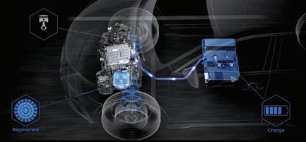 ροπής, έναν ηλεκτροκινητήρα απόδοσης 49 ίππων και 205 Nm, έναν δεύτερο ηλεκτροκινητήρα που λειτουργεί ως μίζα/γεννήτρια υψηλής τάσης 15 kW, μια υδρόψυκτη μπαταρία 1,2 kWh και ένα έξυπνο κιβώτιο ταχυτήτων πολλαπλών λειτουργιών που