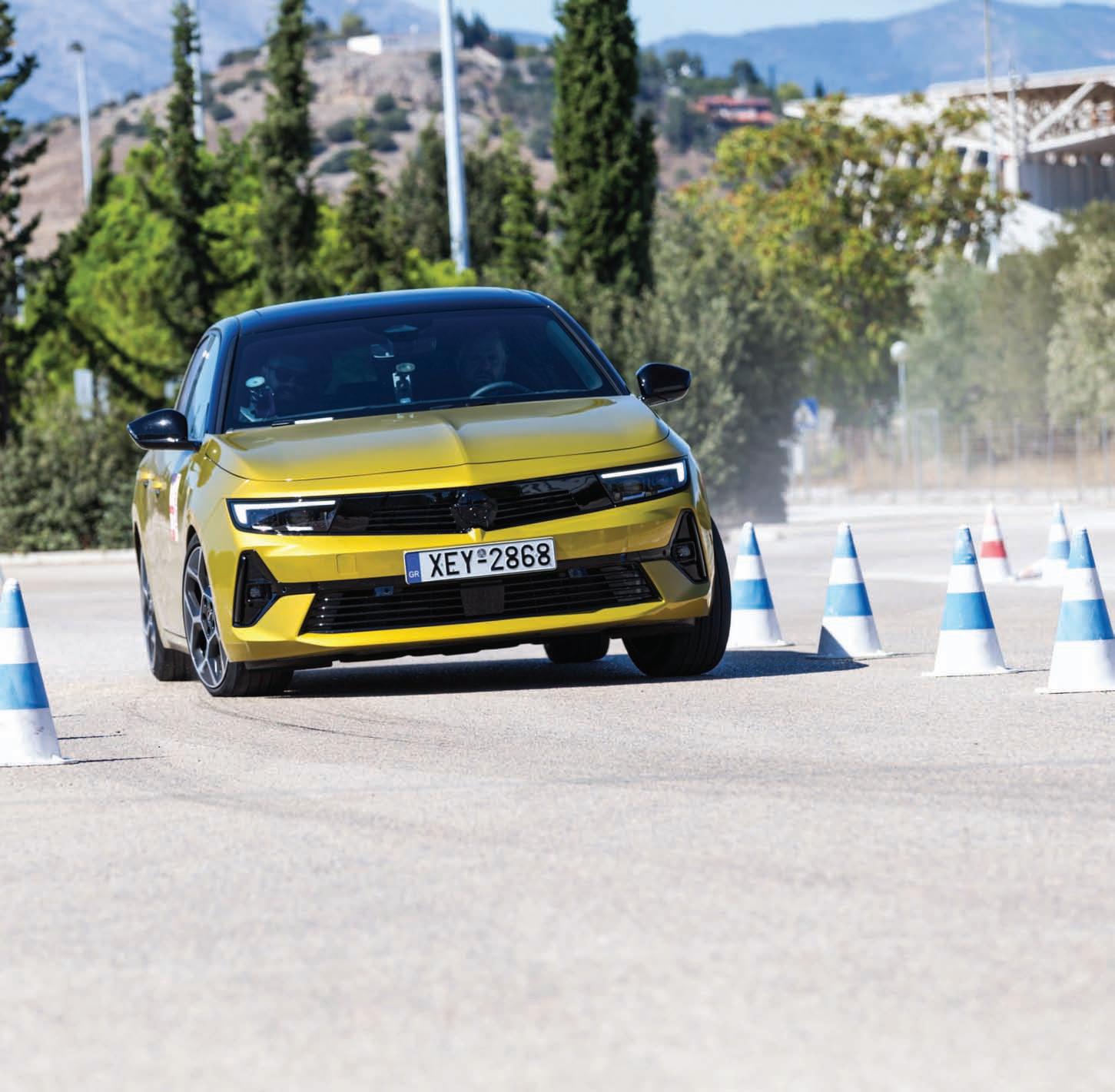 Opel Astra Ν έα εποχή για το Astra μετά από την ενσωμάτωση της Opel στο Stellantis Group μαζί με τις Citroen-Peugeot και Alfa Romeo-Fiat. Σαν αποτέλεσμα οι τεχνι κοί της Opel κατάφεραν να έχουν πρόσβαση στα πατώματα και τα μηχανικά μέρη των Γάλ λων. Έτσι το νέο Opel Astra βασίστηκε λίγοπολύ στο Peugeot 308. Το γαλλικό μοντέλο είχε καταφέρει μια top επίδοση στην απαιτη τική δοκιμασία της αποφυγής ξαφνικού κιν δύνου. Τι κατάφερε όμως το Opel Astra; Το μοντέλο που δοκιμάσαμε ήταν η έκδοση με τον 1,2 turbo Puretech των 130 ίππων που συνδυάζεται με κλασικό αυτόματο κιβώτιο 8 σχέσεων. Η έκδοση εξοπλισμού ήταν η GS Line και το αυτοκίνητο «φορούσε» τρο χούς 18 ιντσών με ελαστικά 225/40. Να ση μειώσουμε εδώ πως η δοκιμή έγινε στον πι στοποιημένο χώρο της σχολής ασφαλούς οδήγησης «Driving Academy» στις εγκατα στάσεις του Ιπποδρόμου στο Μαρκόπουλο Αττικής. 76 χλμ./ώρα Το τιμόνι είναι ελαφρύ, αλλά σε τελική ανάλυση αρκούντως ακριβές και βοηθά το Opel Astra στη διαδικασία των απότομων αλλαγών πορείας. «Στρίβει» μέσω… Γαλλίας Βασισμένο στο πάτωμα και στα μηχανικά μέρη του Peugeot 308, το νέο Opel Astra σημείωσε μια εξαιρετική επίδοση στην απαιτητική δοκιμασία της αποφυγής κινδύνου, όπως και το «αδερφό» του μοντέλο άλλωστε! Γενική αίσθηση οδηγού: Μπορεί να μην νιώθεις τη μηχανική αίσθηση ενός Focus για παράδειγμα, αλλά σε τελική ανάλυση το Οpel Astra είναι αποτελεσματικό και σίγουρα έχει πιο (ευχάριστα) ανάλαφρη αίσθηση από πριν. Όταν το παρακάνεις το ESP παρεμβαίνει έντονα και ενίοτε άτσαλα. Γενική αίσθηση επιβατών: Δεν ταρακουνη θήκαμε ιδιαίτερα, αλλά στο όριο η επέμβαση του ESP είναι έντονη. Σημασία έχει βέβαια πως είναι αποτελεσματική. To νέο Opel Astra στη δοκιμή αποφυγής κινδύνου (ELK TEST)TEST CENTER 76
