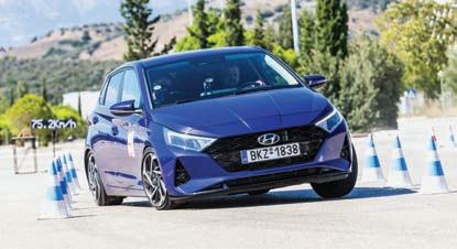 Πετυχημένη προσπάθεια Απόλυτα επιτυχημένη ήταν η προ σπάθεια στα 75 χλμ./ώρα για το Hyundai i20, που χάρη και στους τροχούς των 17 ιντσών με ελαστικά 215/45 «πατάει» καλά, χωρίς έντονη υπο