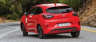 ST των 200 ίππων), με το μικρό crossover να προσφέρεται μόνο σε ήπια υβριδικές επιλογές των 125 και των 155 ίππων με μηχανικό και αυ τόματο 7-τάχυτο κιβώτιο Powershift. Πλην του elk test, κεντρικό σημείο αναφοράς μας είναι η «βασική» έκδοση Ford Puma των 125 ίππων με 6άρι χειροκίνητο κιβώτιο στο εξοπλιστικό πακέ το ST-Line (από 25.291€).