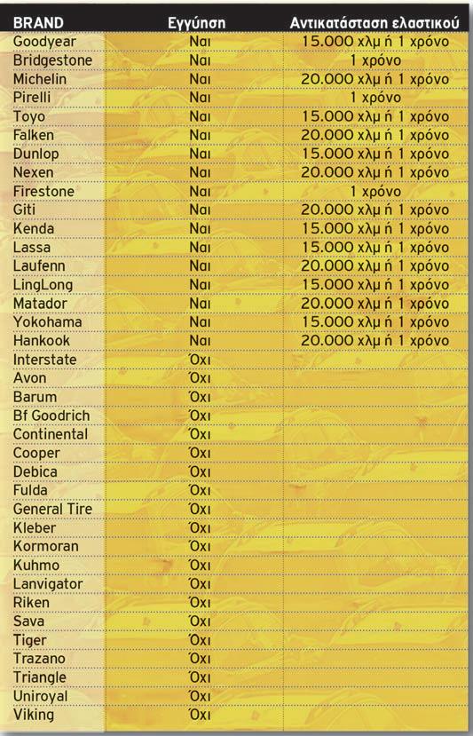 μεταξύ 50 ελαστικών από όλες τις εταιρείες.