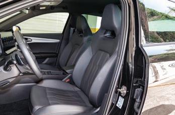 να γίνο νται μόνο από τα paddles, αλλά κρί μα που αυτά είναι μικρά και όχι πα κτωμένα στην κολώνα του τιμονιού. Προσεγμένο σε ποιότητα και design είναι το ταμπλό του κορυφαίου Cupra Formentor. Οι αλλαγές στην καμπίνα σε σχέση με τις άλλες εκδόσεις είναι μικρές, αλλά έκδηλες με πιο χτυπητή αυτή των μπάκετ καθισμάτων της Sabelt με το ενιαίο προσκέφαλο. Στάνταρ η κεντρική οθόνη των 12 ιντσών, ο τριζωνικός κλιματισμός και ο ψηφιακός πίνακας οργάνων που αλλάζει μοτίβο σύμφωνα με το πρόγραμμα λειτουργίας ή τα θέλω σου. Το κουμπί της μίζας είναι φυσικά στο τιμόνι. H πίσω ανεξάρτητη ανάρτηση πολλαπλών συνδέσμων προσφέρει ακρίβεια στην οδική συμπεριφορά, χωρίς να υστερεί σε ενδοτικότητα πάνω από τις κακοτεχνίες. Αυτή που κάνει όμως τη διαφορά είναι η ηλεκτρονική απόσβεση των αμορτισέρ. To κράτημα χάρη και στην τετρακίνηση είναι βασανιστικό. ESP l Σύστήμα Αυτόματου Φρεναρίσματος l Αερόσακοι 6 Ηλ. παράθυρα Ε/Π l/l Κεντρικό κλείδωμα/Tλχ l/l Ηλεκτρικοί καθρέπτες/Ηλ. Aναδ. l/l Υποβοήθηση/ Ρύθμιση τιμονιού l/l Κλιματισμός l 3-ζωνικός Ηχοσύστημα/ l/έγχρωμη αφής 12’’ Οθόνη αφής με κάμερα όπισθεν Cruise control l (Adaptive) Ζάντες αλουμινίου l (20’’) Προβολείς ομίχλης l Φώτα ημέρας l (LED) Εγγύηση μηχ. Μερών 4 χρόνια l: στάνταρ, m: προαιρετικός, -: δε διατίθεται Εξοπλισμός - τιμή Έκδοση VZ5 Τιμή από (ευρώ) 65.490 Πλάτος εμπρός 1.405 Πλάτος πίσω 1.340 ΜήκοςxΠλάτος 4.468x1.852 xΎψος x1.505 *Οι μετρήσεις έχουν γίνει με προσομοίωση επιβάτη ύψους 1,75 μ. και βάρους 75 κιλών 121 χλστ.70 χλστ. 410 λτ. 175 χλστ. 2.681 χλστ.