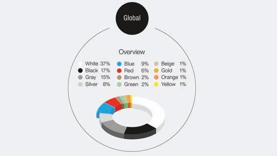 ρη δημοφιλία», ανέφερε ο Mark Gutjahr, επικεφαλής χρωματικού σχεδιασμού αυτοκινήτων σε Ευρώ πη, Μέση Ανατολή και Αφρική. Ασία-Ωκεανία –Πρωτοπόροι στην παγκό σμια ποικιλία χρωμάτων Αν και το λευκό εξακολουθεί να είναι το αγαπημένο χρώμα σε Ασία και Ωκεανία, η δημοφιλία του άρ χισε να υποχωρεί. Το μαύρο και το γκρι συνεχίζουν να βελτιώνονται,