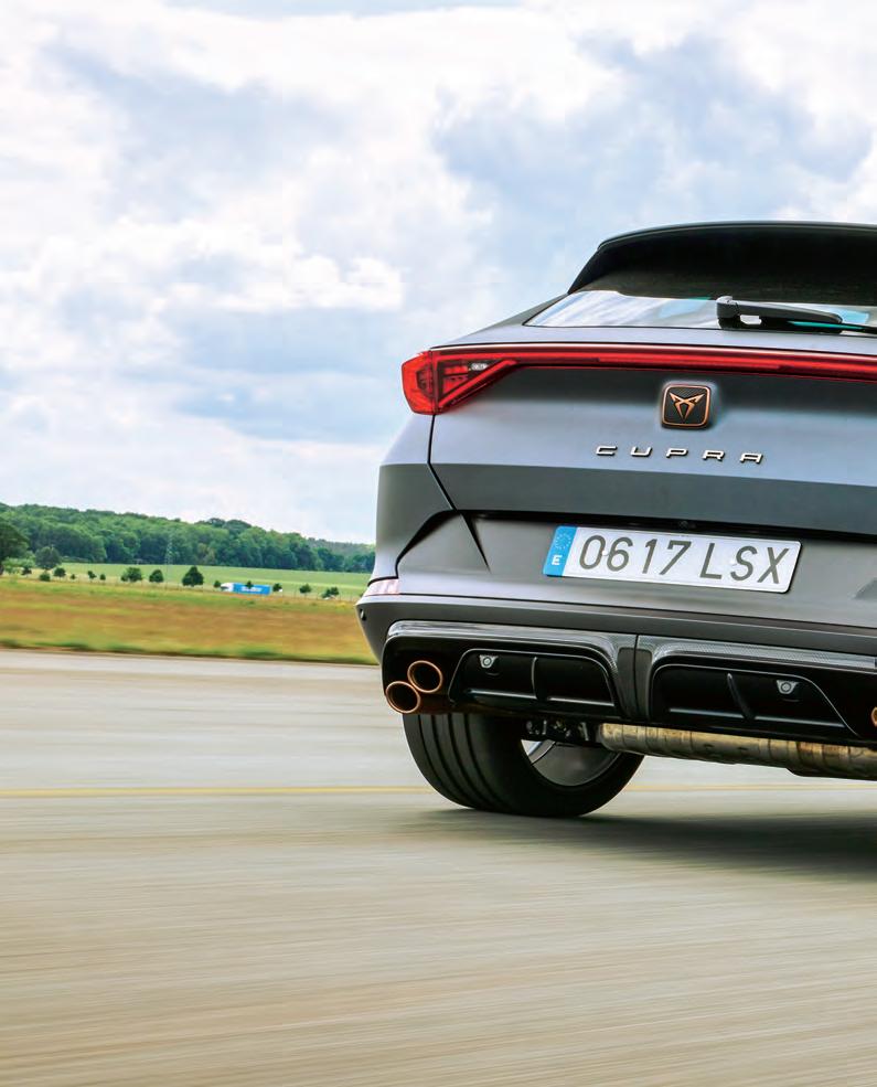 στο κέντρο της εφαρμογής των πιέσεων G και τα καθίσματά του δεν προσφέρουν ίδια στήριξη στους ώμους συγκριτικά με του Cupra Formentor. Είναι ωστόσο μούρλια για καθημερινό αυτοκίνητο με τρομερά γκάζια, παρά το ιδιόμορφο πε ντάλ του γκαζιού. Και το Cupra μια χαρά κάνει για καθημερινή χρήση, αλλά για να το απολαύσεις πλήρως πρέπει πού και πού να κάνεις και καμιά βόλτα μέχρι την τοπική σου πίστα – εκεί θα σε αντα μείψει πλήρως! νει τον πίσω άξονα μηχανικά. Κρο ταλίζει λιγάκι και οι πίσω τροχοί γαντζώνονται στην άσφαλτο, αν και το σύστημα