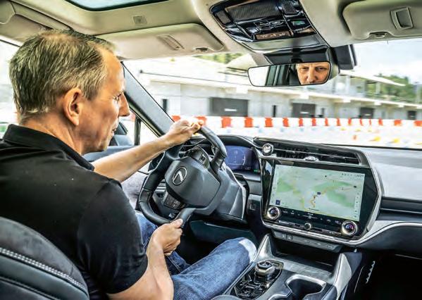 Το νέο πρόσωπο της Lexus Το αμιγώς ηλεκτρικό RZ 450e θα μας κάνεις να ξεχάσουμε την κλασική έννοια του τιμονιού και θα χαρίσει μια καινούργια εμπειρία οδήγησης, με την ελάχιστη δυνατή προσπάθεια από τον οδηγό. Είναι πιο διασκεδαστικό από όσο ακούγεται, λιγότερο τέλειο από ότι φαίνεται! T o νέο ηλεκτρικό SUV της Lexus, το RZ 450e, ουσιαστικά είναι ένα πολυτελές, πιο δυνατό και πιο όμορφο bZ4x (μοιρά ζονται το ίδιο πάτωμα). Όμως αυτό που το κά νει να ξεχωρίζει από το υπόλοιπο ανταγωνισμό είναι το ιδιαίτερο τιμόνι του. Όχι μόνο του σχή ματος του, που ονομάζεται ζυγός (στα αγγλικά yoke και δεν αναφέρεται στο ζώδιο), αλλά στον τρόπο λειτουργίας του. Ξεχάστε τους πολλούς κύκλους στροφής για να μπείτε σε μια κλειστή στροφή, αφού μια μικρή κίνηση του τιμονιού θα είναι αρκετή. Η συγκεκριμένη τεχνολογία ονομάζεται «One motion Grip Steer-by-Wire» και ουσιαστικά πρόκειται για ένα εκπληκτικά άμεσης μετάδοσης σύστημα διεύθυνσης που δεν συνδέεται μηχανικά με το τιμόνι, αλλά μό νο μέσω ηλεκτρικών καλωδίων και ηλεκτρονι κών σημάτων. H Lexus μπορεί να ετοιμάζει το επίσημο λαν σάρισμα τους για τα μέσα φθινοπώρου με τη τι μή του να ξεκινάει από τις 65.000 ευρώ, αλ λά εμείς είχαμε την ευκαιρία να δοκιμάσουμε σε κυκλική διαδρομή το πρωτοποριακό «πηδά λιο». Άραγε λειτουργούν όλα; σεσυνεργασίαμε 6 ΟΔΗΓΟΥΜΕ Lexus RZ450e