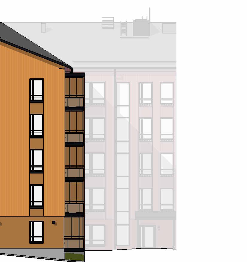 Rakenteet ja julkisivut Alapohja on maanvarainen. Välipohjat ovat pääosin ontelolaattoja. Yläpohjan kantavat rakenteet tehdään pääosin ontelolaattoina. Vesikattorakenteet ovat puuta ja vesikatteena on kumibitumikermi. Kerrostalon kantavat ulkoseinät ovat pääosin puuverhoiltuja betonirakenteisia elementtiseiniä. Maantasossa ja parvekkeiden taustoilla julkisivut ovat uritettua ja maalattuja tai lasuurikäsiteltyä betonia. Huoneistojen väliset seinät ovat betonielementtiseiniä. Kevyet väliseinät ovat pääosin kipsilevypintaisia puu- tai teräsrunkoisia seiniä. Asuntojen märkätilat ovat pääosin valmiita tehdasvalmisteisia kylpyhuone-elementtejä. Yleisten tilojen kevyet väliseinät ovat kivi- tai levyrakenteisia. Porrashuoneessa on hissi ja betonirakenteinen porras.