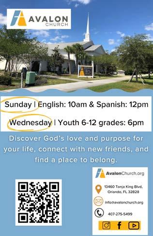 Avalon Church 13460 Tanja King Blvd. 407-275-5499 AvalonChurch.org