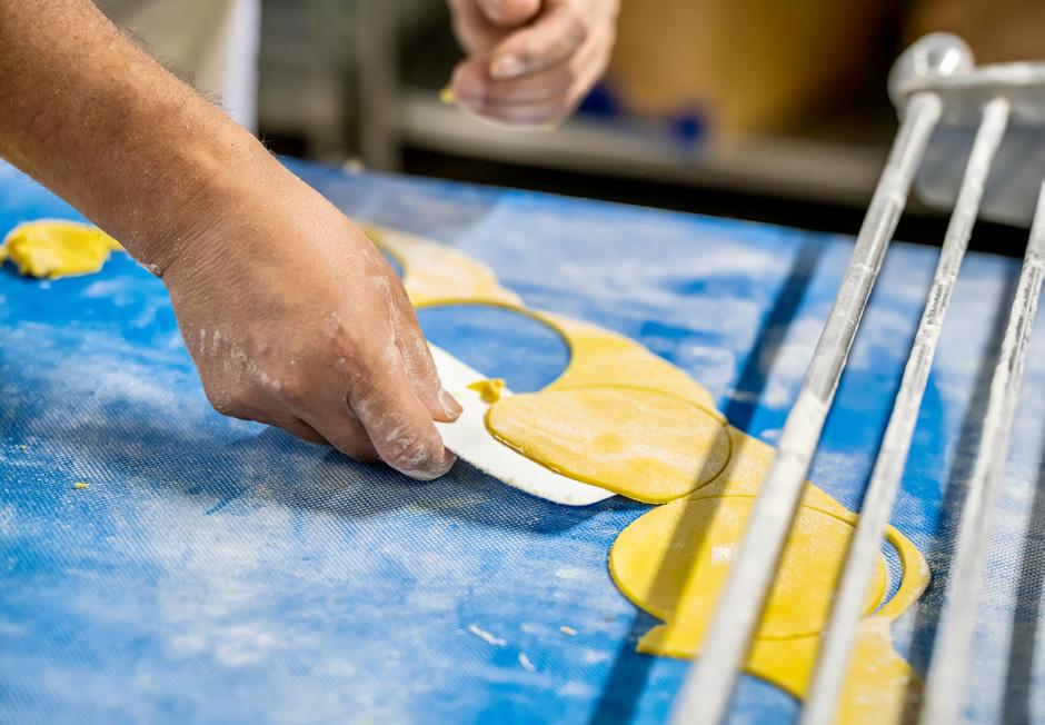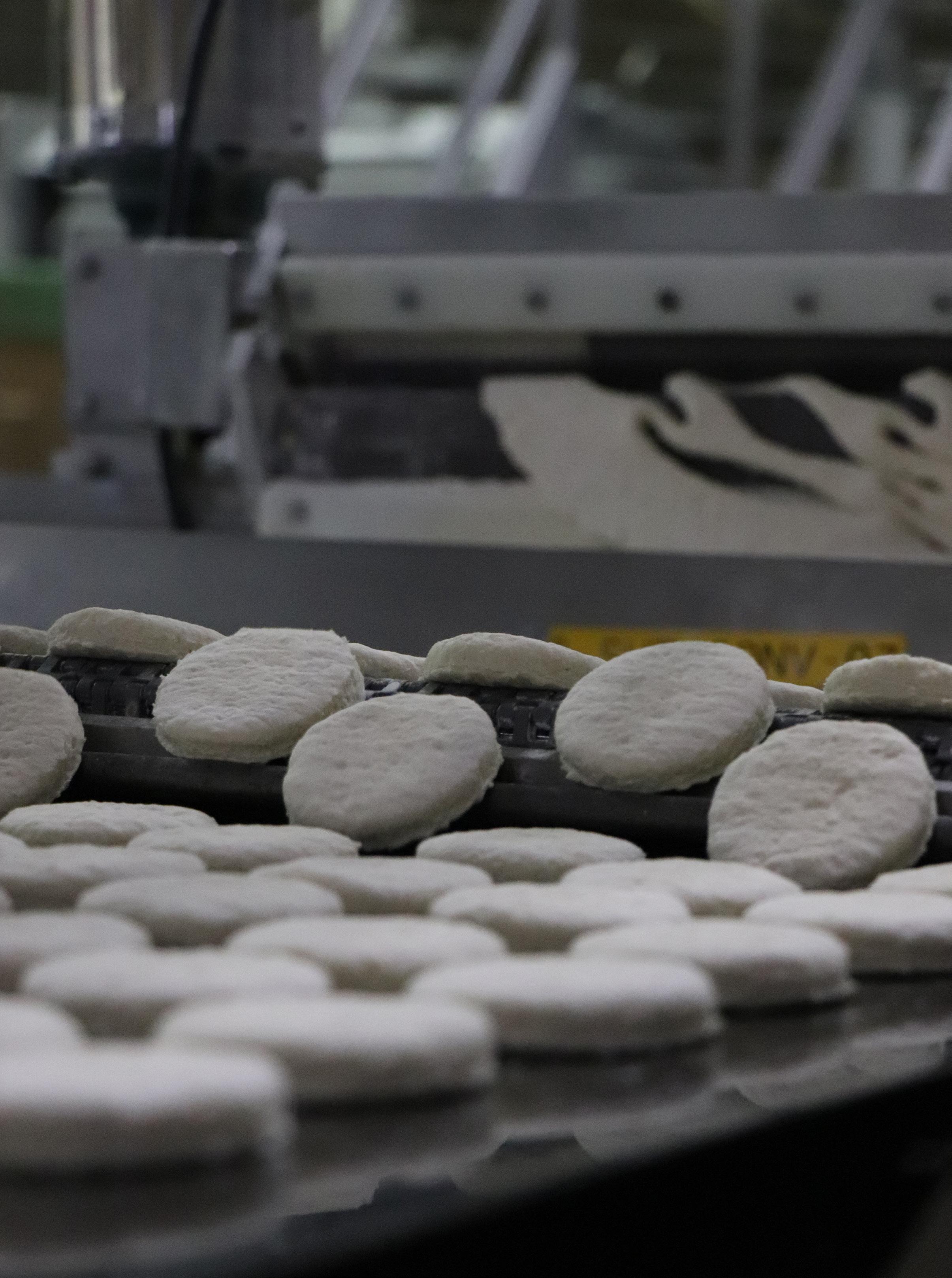 “We stamp more than 900 biscuits a minute,” Tarin said. “If we’re running a 2-ounce biscuit, we can make 2.5 million biscuits in one shift.”