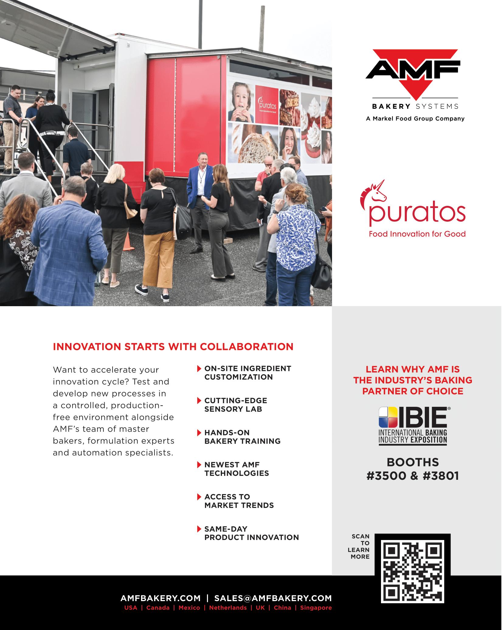 Commercial Baking is published by Avant Food Media, 1703 Wyandotte St., Suite 300, Kansas City, MO 64108. Commercial Baking considers its sources reliable and verifies as much data as possible, although reporting inaccuracies can occur. Consequently, readers using this information do so at their own risk. Commercial Baking is distributed with the understanding that the publisher is not liable for errors and omissions. Although persons and companies mentioned herein are believed to be reputable, neither Avant Food Media nor any of its employees accept any responsibility whatsoever for their activities. Commercial Baking magazine is printed in the USA and all rights are reserved.