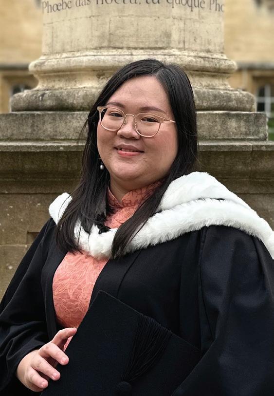 "Serving as Student Council President became my defning experience. Leading my peers taught me that true leadership means serving others—a lesson that continues to guide my university and workplace endeavours. Through organising school events and advocating for student welfare, I learned the power of empathy and teamwork. Today, I still draw on these lessons to approach professional challenges with compassion and collaboration. One of my proudest memories was witnessing HCIS’s remarkable campus expansion. As part of the frst few batches to beneft from the new block, I experienced its state-of-the-art Cultural Centre Theatre and laboratories frsthand. This expansion represented more than just new buildings. It embodied HCIS’s commitment to world-class facilities that matched its academic ambitions, creating spaces where dreams could take fight. HCIS instilled grit in me through relentless academics and leadership trials. Juggling IB exams while spearheading student initiatives taught me to persevere when overwhelmed. The school’s 自强不息 ethos transformed my fear of failure into fuel—equipping me to tackle career challenges with the same resilient mindset. As HCIS enters its next 20 years, I hope it retains its culture of fostering well-rounded leaders. May it continue championing kindness alongside academic rigour, empowering students to create meaningful societal impact. The HCIS spirit—grit, compassion, and an unwavering hunger for growth—is the legacy I hope future generations inherit.”