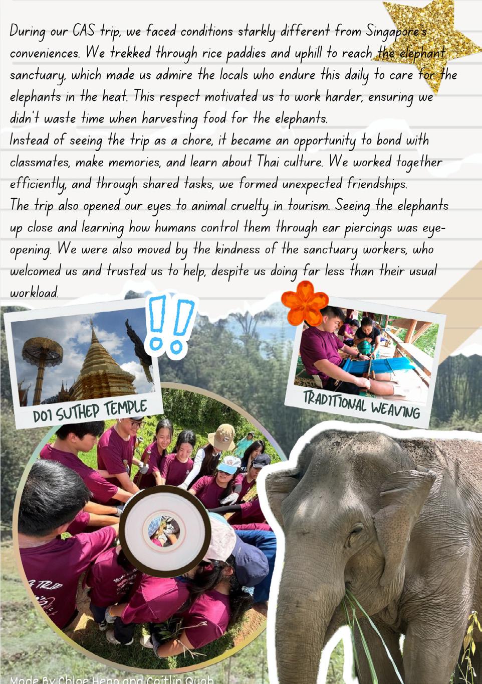 Resilience Camp, Internationalism Trips, CAS (Creativity, Activity, Service) portfolio, or co-curricular activities, students are encouraged to lead, collaborate, and reflect. A signature initiative is ‘HCIS Gives Back’, our annual service-learning event held in conjunction with National Day. Through meaningful activities such as community engagement with elder care centres, environmental clean-ups, and outreach for underserved groups, students connect with broader society, building empathy, civicmindedness, and global awareness.