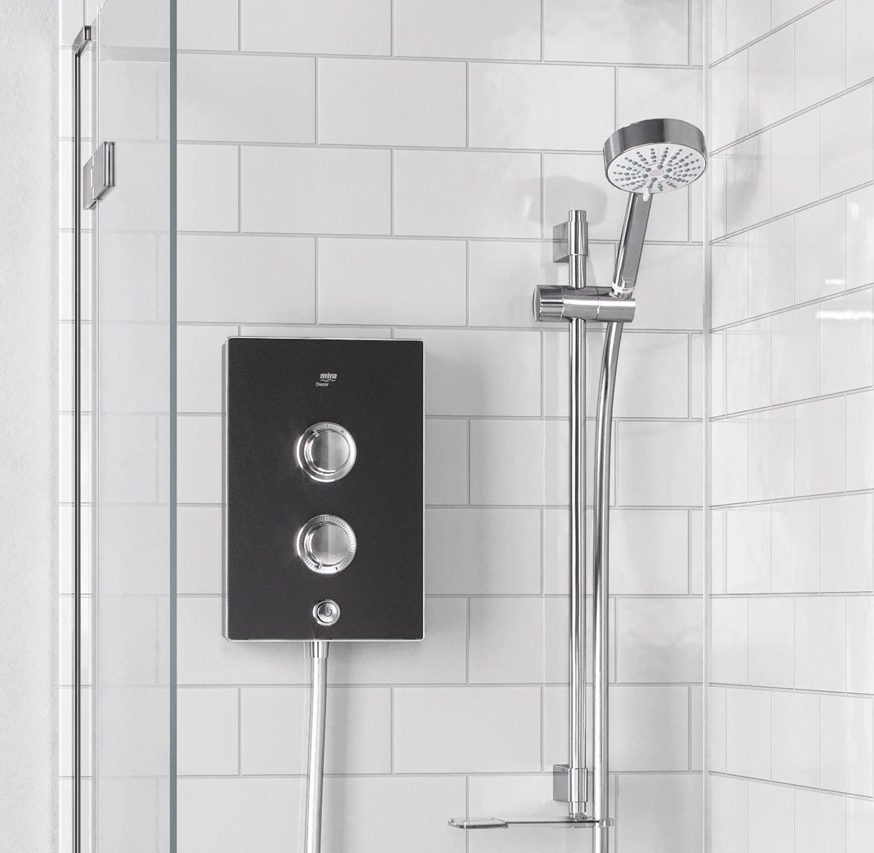 • With its smooth fascia in three contemporary finishes, the Mira Decor electric shower becomes a stunning focal point in your new bathroom.