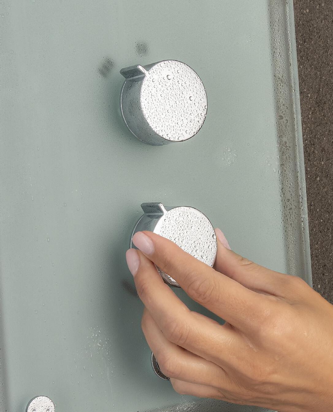 • Easily control your shower with separate temperature and flow controls and an on/off push button.