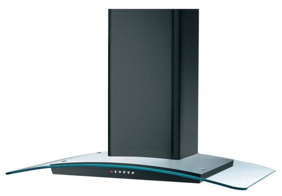 A fashionable stainless steel cooker hood with a touch control black glass panel and three speed settings.
