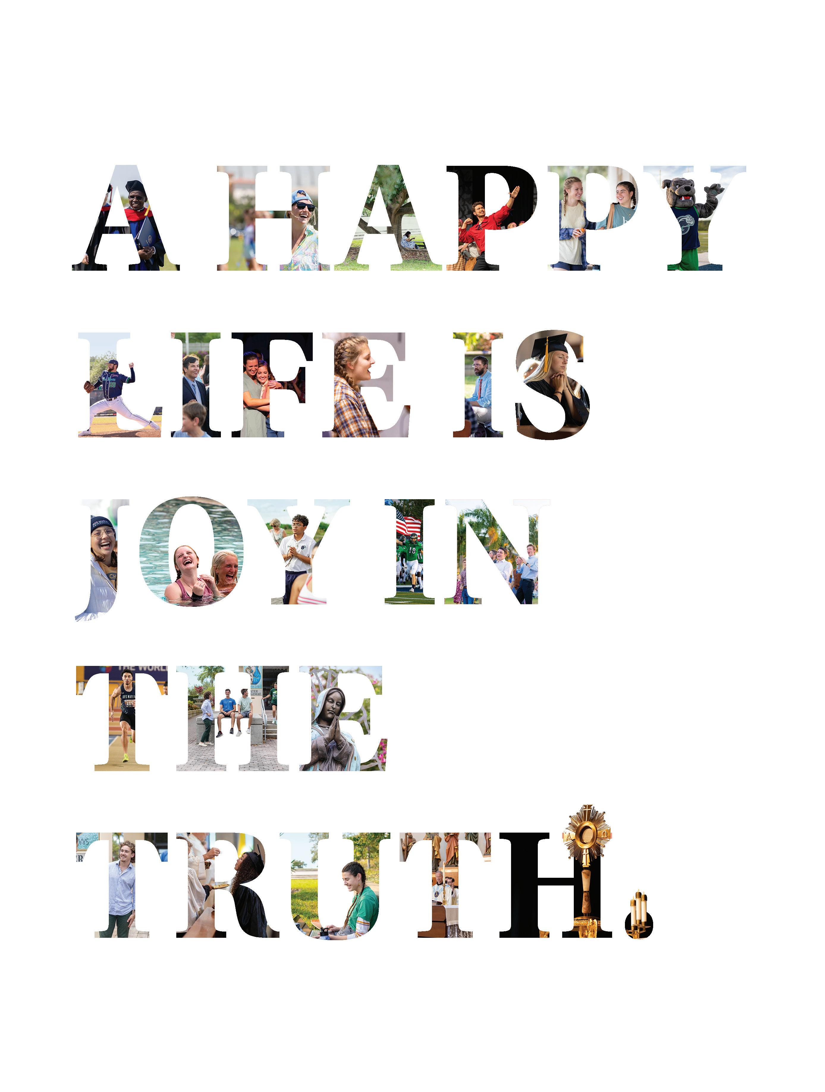 According to Pope St. John Paul II, “God made us for joy.” At Ave, you’ll see the enthusiasm that overflows as students discover the intersection between truth and beauty. You’ll hear the laughter echoing around campus as they embrace the abundance of God’s plan. We know joy is found in Christ, and we strive to encounter Him in our classes, residence halls, athletics, and most notably, in the sacraments.