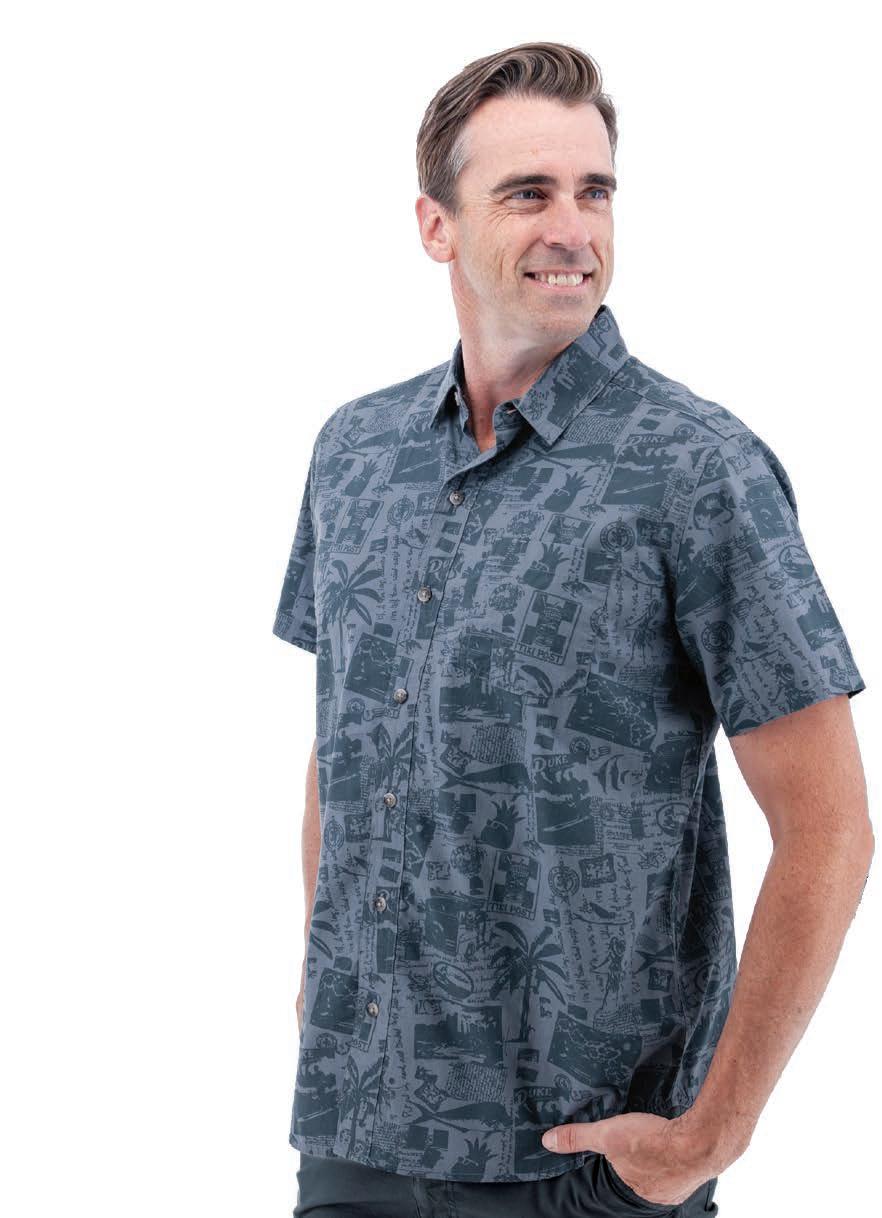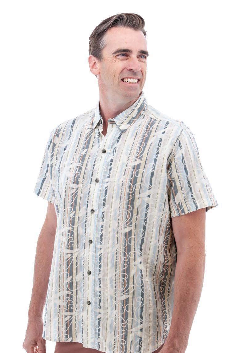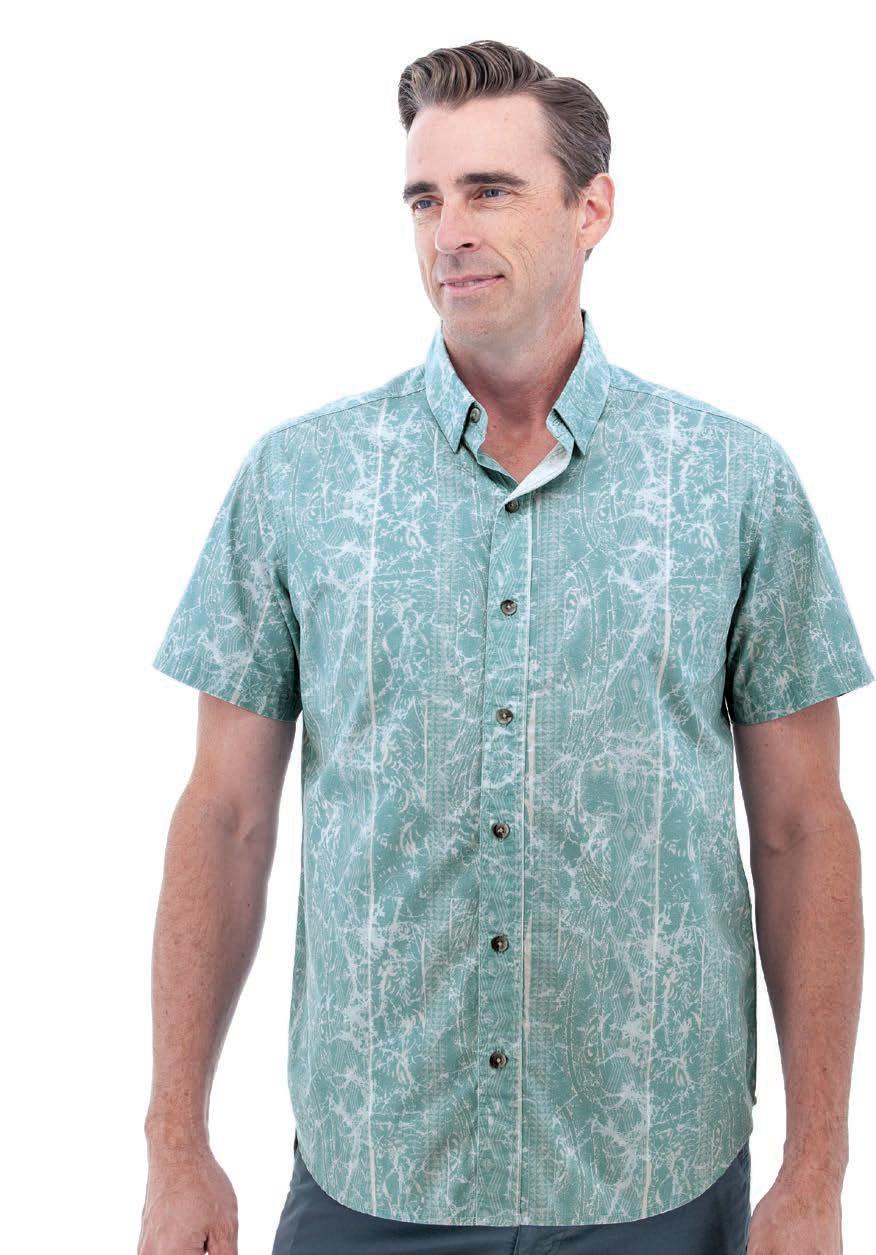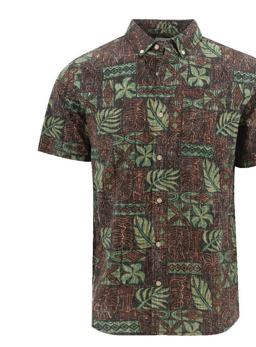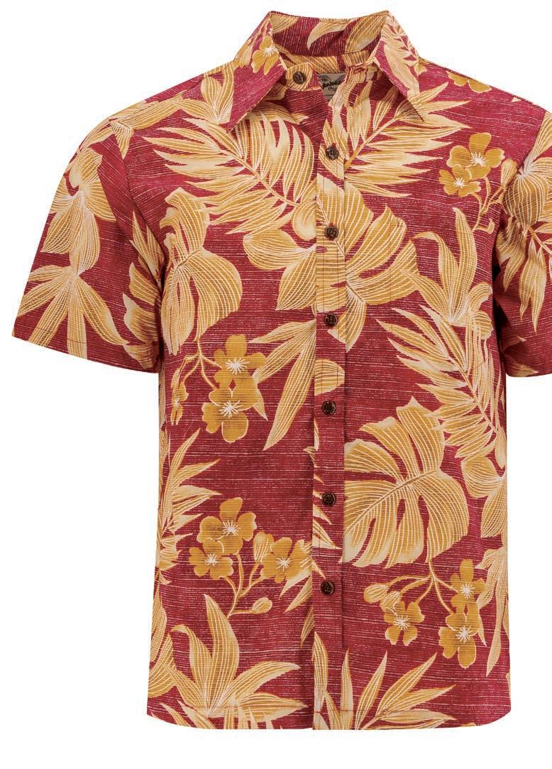 The name “Puamana” translates from Hawaiian to mean “Majestic Flower”. This classic pareau style print depicts the many shapes that hibiscus flowers display accompanied by swirling monstera leaves. Along with it’s easy care and crisp look, this shirt is made using Spooner Kloth™, a blend of cotton and spun polyester that’s amazingly durable, wrinkle free and breathable.