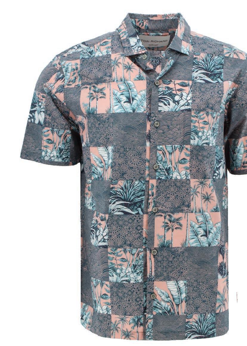 This colorful, lively print will inspire wanderlust for a beautiful island existence. The fabric was invented specifically for high temperatures and humidity. It’s incredibly luxurious, smooth, crease-resistant fiber enhanced by an exclusive finish. Lightweight with a full button front, pattern-matched chest pocket, straight hem and side vents for ease of movement.
