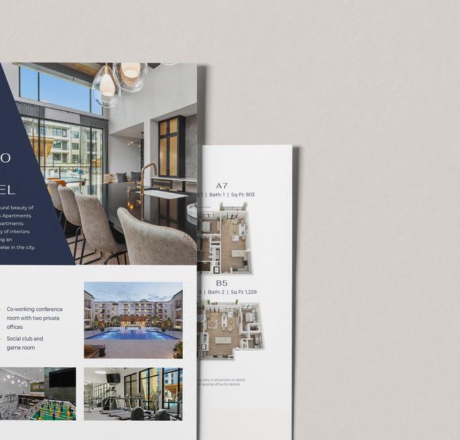 Beyond creating award-winning brands, we provide you with a complete toolkit - a solid plan, engaging materials, and expert guidance to bring it all to life. We focus on developing digital and print materials that truly represent your property’s identity and connect with your ideal residents. Our goal is to equip you with everything you need to effectively showcase what makes your property shine in a competitive market, both online and in person.