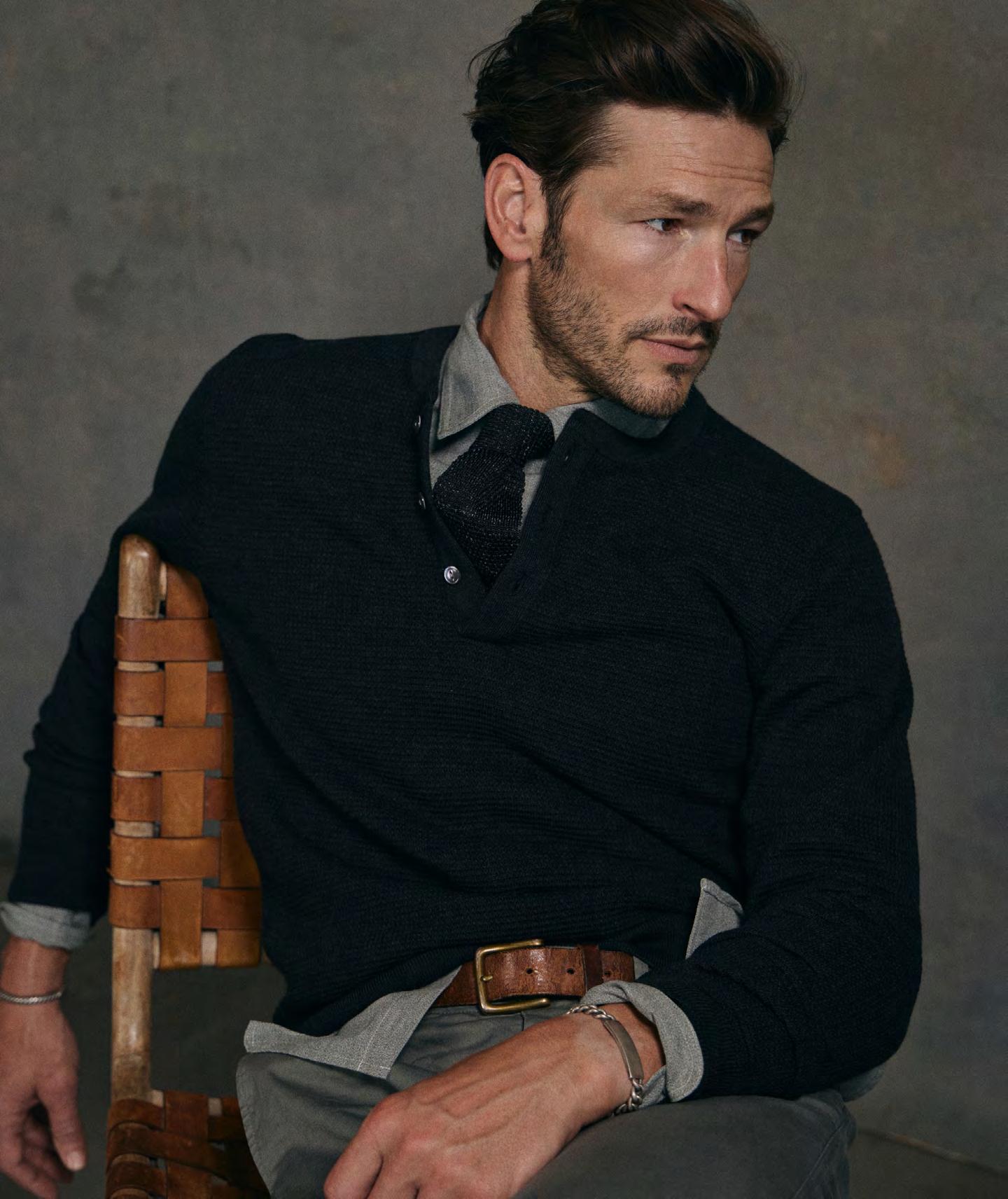 YOU’VE GOT MALE Above: Power broker, Noble Black; left: a model in Rivay, the cult menswear label based in Bedford, NY.