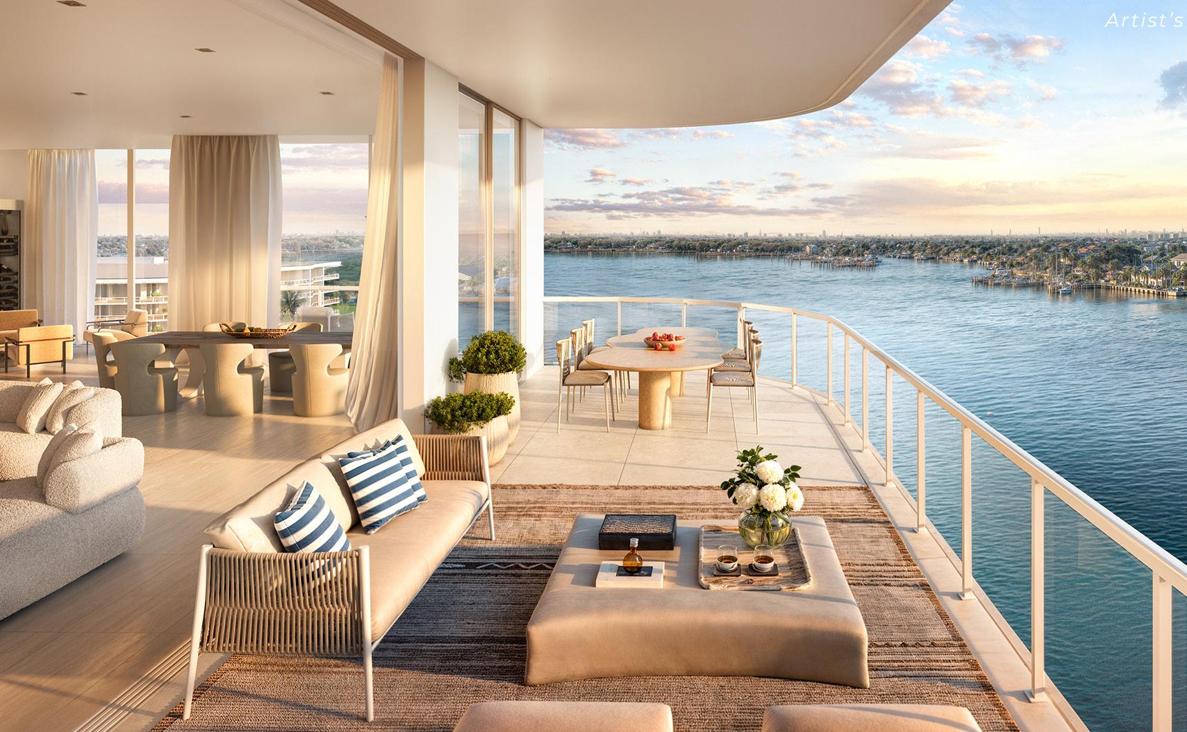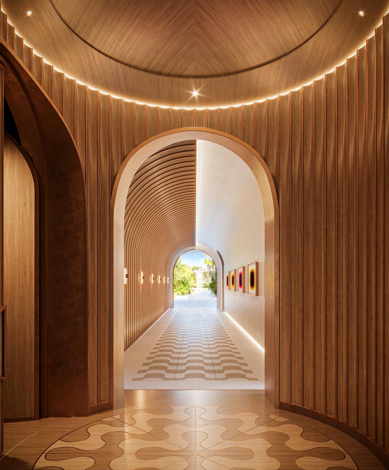 A double-height porte-cochère opens to an art-filled 10,000 square foot lobby, which leads to the ocean. Inspired by the detail of yacht craftsmanship, interior designer Patricia Anastassiadis uses luxe materials in expansive layouts to make each residence the ultimate experience in luxury living.