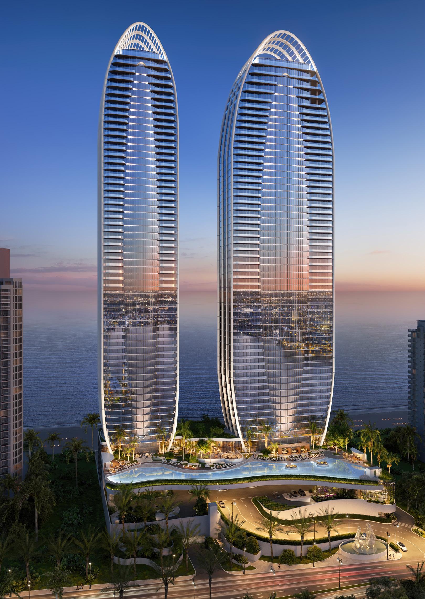 “THE EARTH’S ELLIPTICAL PATH INSPIRED THE CURVED, SAIL-LIKE SHAPE OF THE TWO TOWERS. AND IN A CITY WITH A VAULTED PRESENCE IN THE ART WORLD, SUNNY ISLES INSTANTLY REIGNS AS AN ARCHITECTURAL MASTERPIECE.”