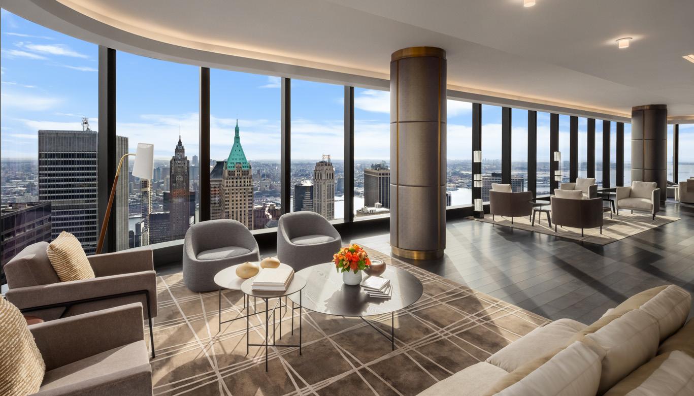 “The Greenwich is not designed according to the ‘mansions in the sky’ philosophy popularized in the early 20th century,” says Jim Herr, a partner who guided the project’s completion. That traditional strategy dictates that larger apartments are always at the top. The Greenwich does have a suite of penthouses but also apartments, no matter their size, throughout the building. Through seamless, curved, full-height, floor-to-ceiling curtain walls, apartments look out across the city and river and miles beyond–unencumbered. Seeing nothing but sky is an extraordinary asset.
