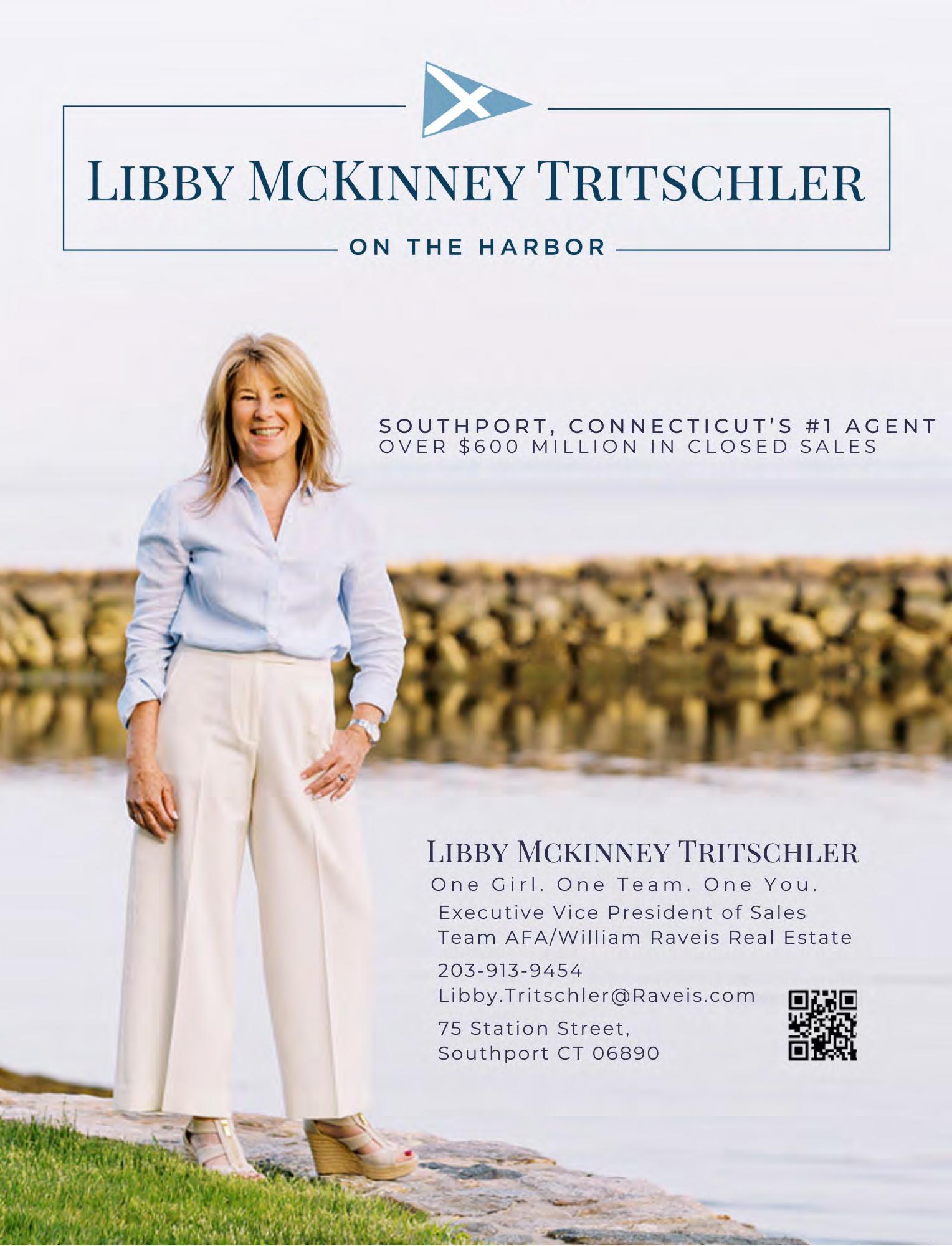 What truly distinguishes Libby is her deep commitment to Southport beyond real estate. A lifelong Fairfield County resident, she continues her family’s tradition of community service through leadership roles on the boards of the Pequot Library, the Westport/Weston YMCA (where she serves on the executive committee), the Bedford Family Social Responsibility Fund, and the Stewart B. McKinney Foundation. She is also an active mentor with the Shepards Mentor Program, reflecting her belief that strong communities are built through longterm investment and care.