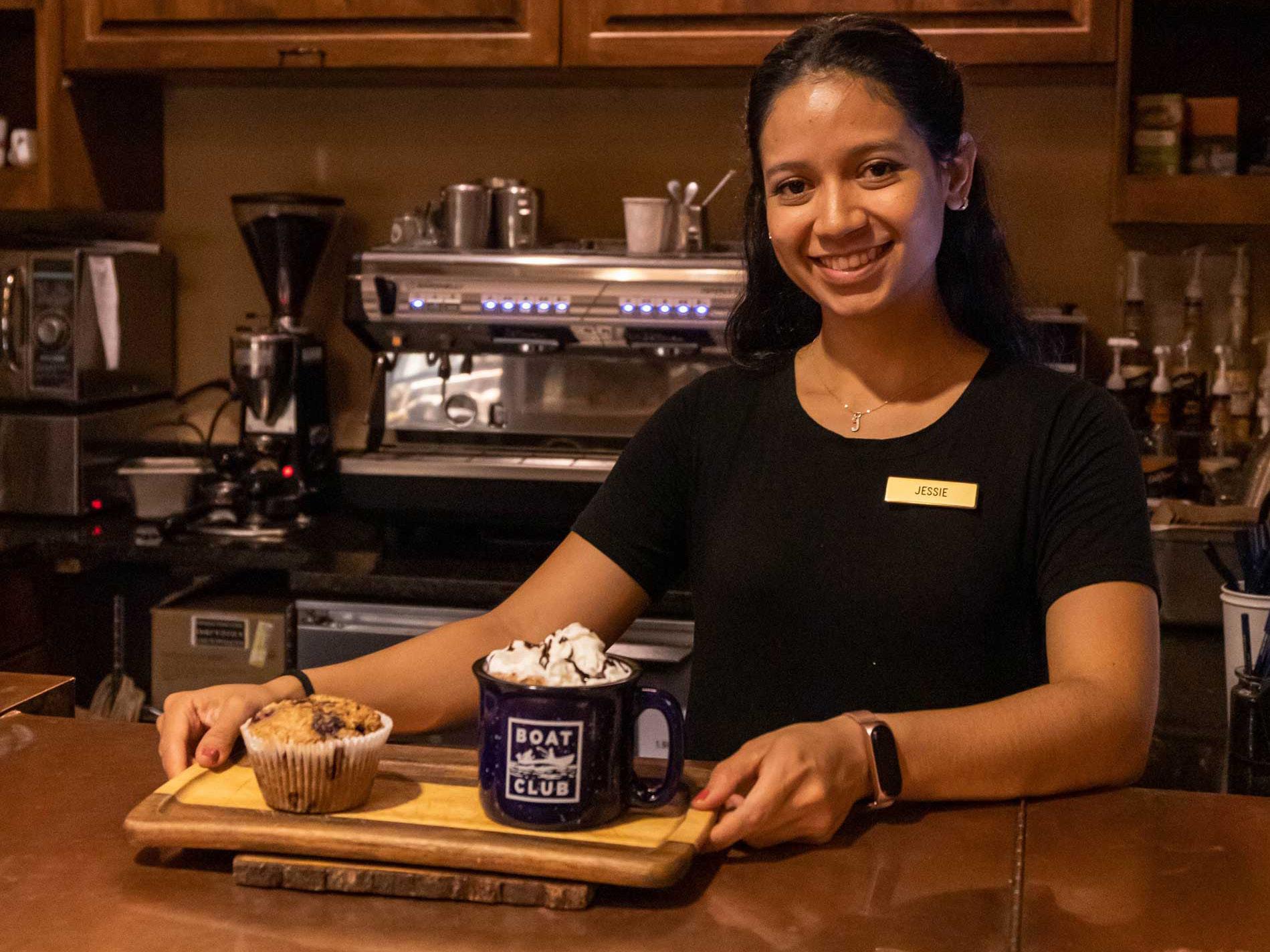 Coffee Dock | Choose from a selection of custom Montana-roasted coffee beverages including frappes and smoothies or grab one of our famous huckleberry pastries. We also offer grab-and-go sandwiches and wraps, perfect for taking on your way out the door for the day’s adventure.