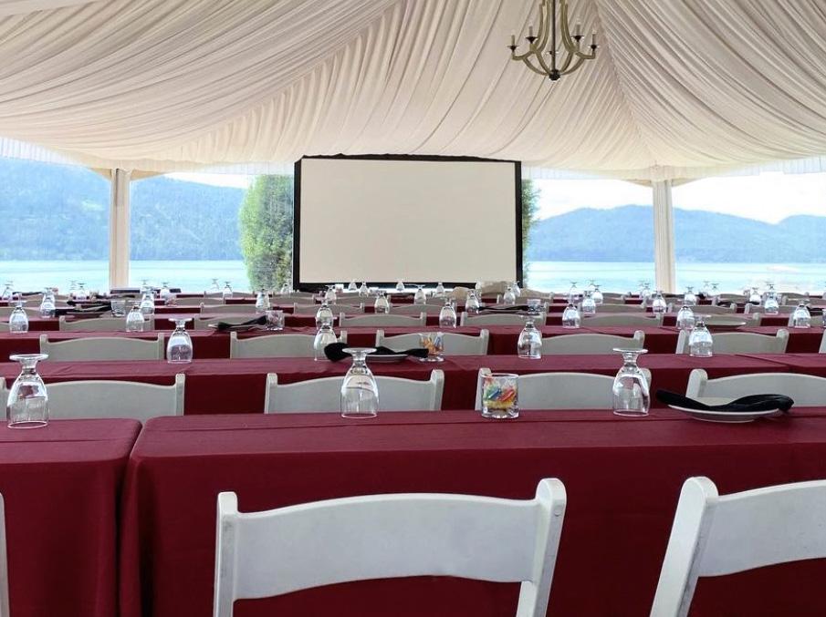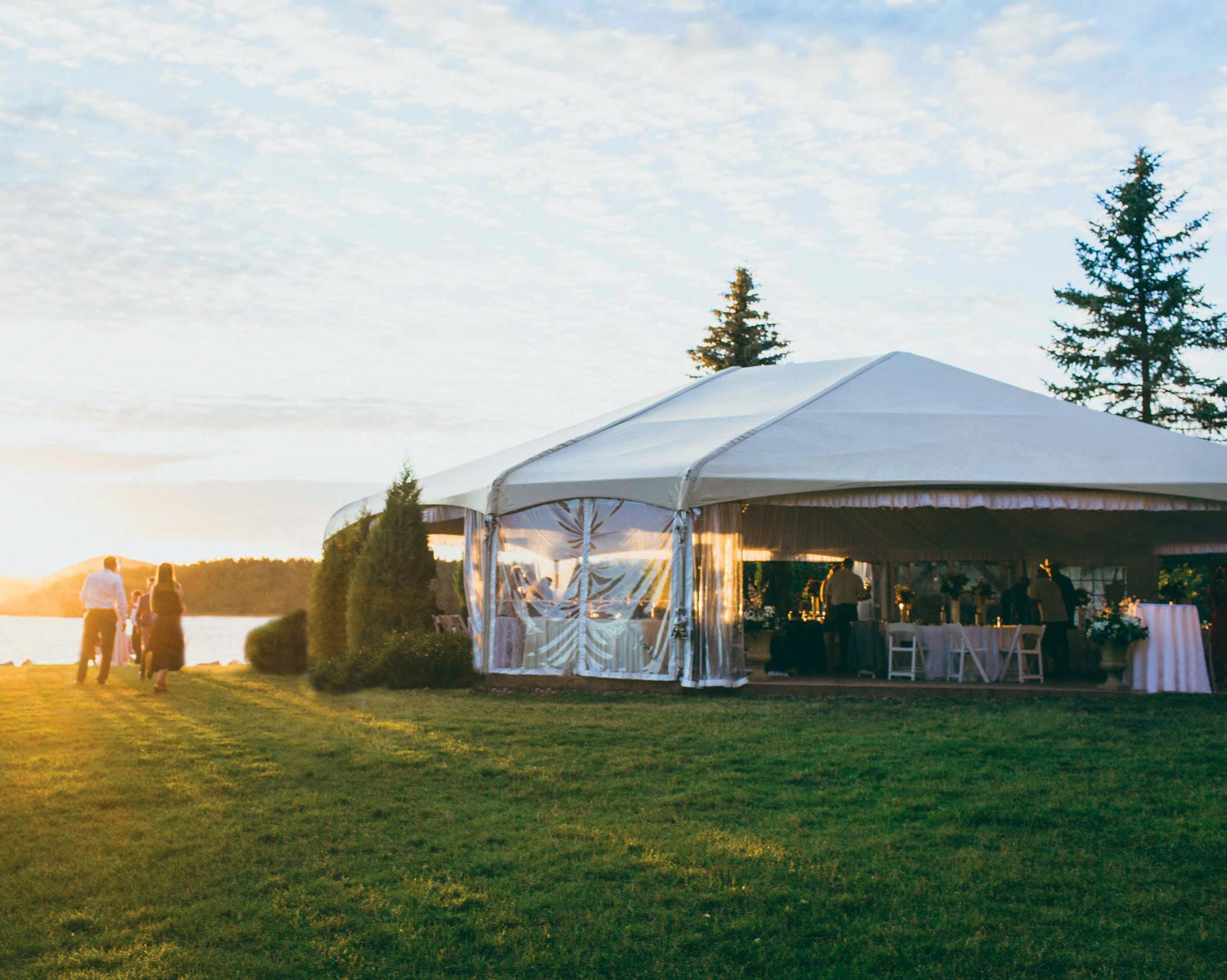 Lakeside Pavilion | The 2,100 square foot Lakeside Pavilion provides stunning views in an al fresco setting for cocktail receptions or dinner events for up to 120 guests. Larger parties can be accommodated with the rental of additional tenting. Windowed walls provide protection from the elements to extend the season of this venue for spring and fall events.
