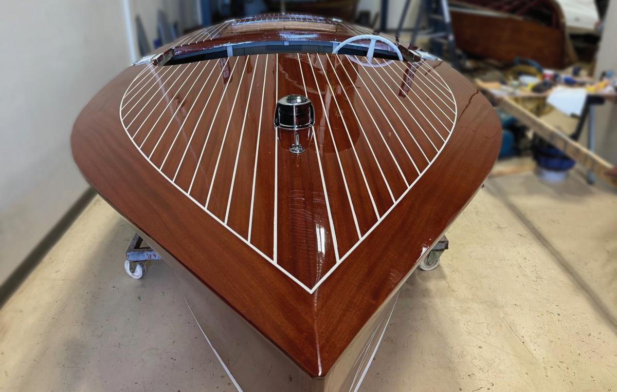The restoration process was started in 2003. We finished in 2010. All the wood that you can see is new plus much that you cannot see. In the past 15 years, we have repainted the bottom and added 3 more coats of varnish. We have participated in boat shows every year since completing the restoration.