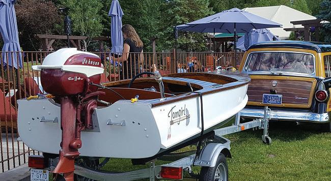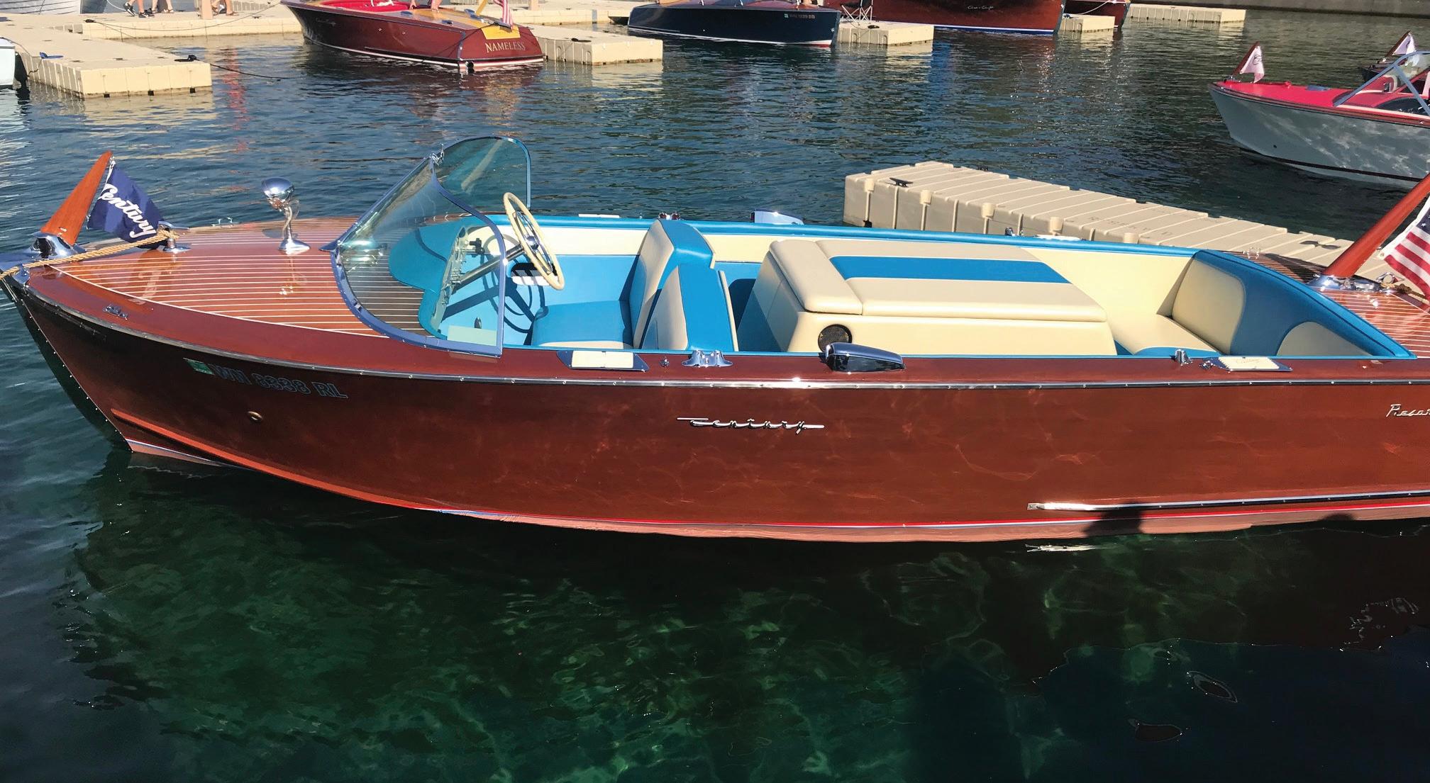 I bought this particular craft in 2003 as a decrepit gray “pattern boat” out of of a Montana storage yard. It was purchased “as is” with no engine or hardware. Restoration was done in stages as time and money allowed including the installation of a more modern V-8 engine — 100 pounds less, 100 more HP.