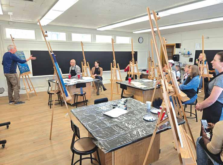 classrooms and a large hallway art gallery for exhibitions and a variety of classes in different art mediums and skills, such as sewing and cookie decorating.