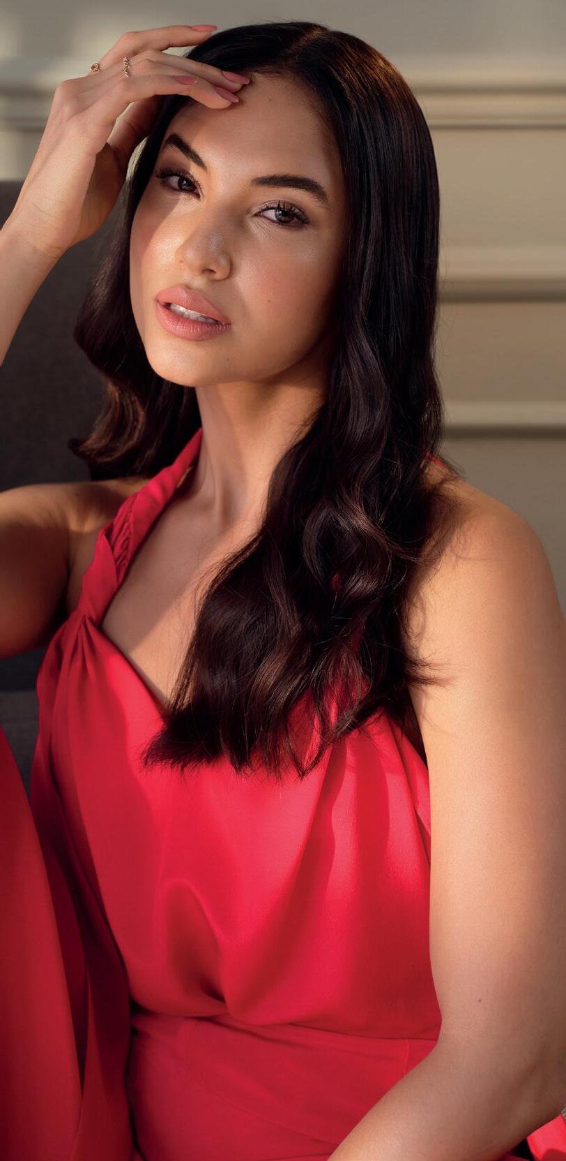 Ella usa el tono shine Scarlet Scarlet