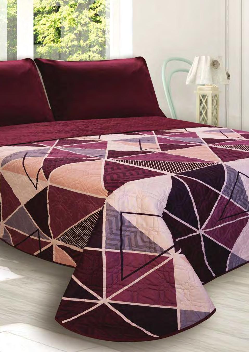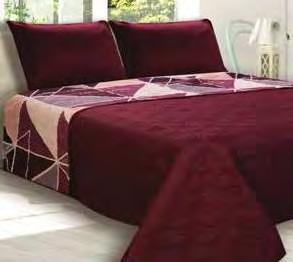 Cubrecama Matrimonial Triángulos Vino, Beige y Rosa • Microfibra 70 g, 100% poliéster • Reversible: lado estampado y lado liso • Fácil de lavar • Medidas: 210 x 230 cm • Incluye dos fundas
