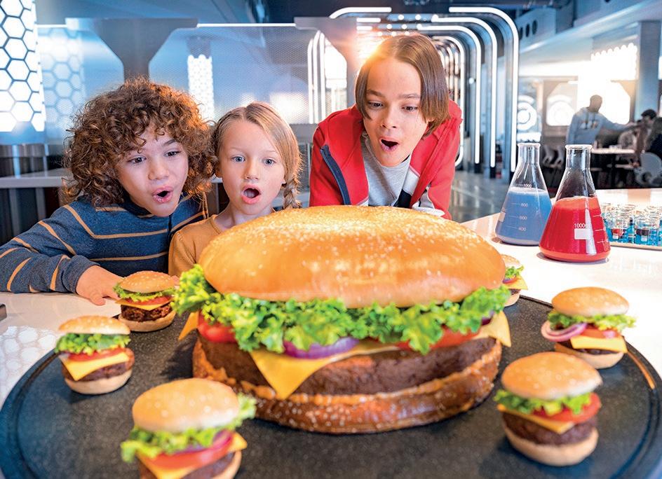 Recoge el equipamiento para tu misión con productos exclusivos en Mission Equipment y saborea delicias de héroes en los restaurantes PYM Kitchen y Stark Factory.