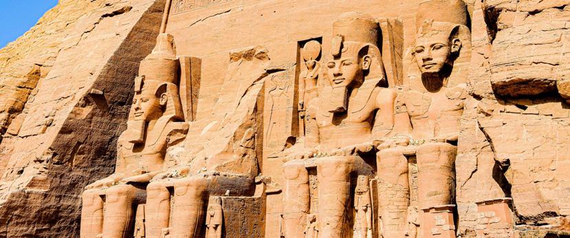Junto al lago Nasser, Abu Simbel, está formado por los templos tallados en roca de Ramsés II y su primera esposa Nefertari.