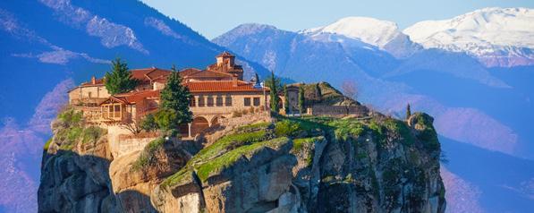 díos. Esta convivencia ha dejado vívidos recuerdos y registros en el centro histórico de la ciudad. A continuación nos dirigiremos hacia Kalambaka, con parada en Metsovo, un peculiar pueblo de montaña de callejuelas estrecha alejado de la civilización que parece un escenario de cuento. Llegada a Meteora, centro religioso que funde naturaleza y arquitectura. Visita a dos de los Monasterios colgantes. En estos impresionante Monasterios tendremos la sensación de tocar el cielo griego. De hecho “Meteora” significa “suspendido en el aire”. Un conjunto Patrimonio de la Humanidad que sorprende por su belleza. Cena y alojamiento en el hotel.