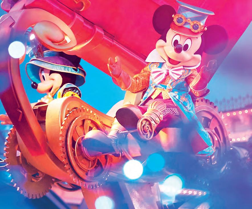 Sumérgete en un torbellino de diversión, baila al ritmo de la música y saluda a Mickey y a sus amigos ataviados con sus magníficos trajes del 30º Aniversario.