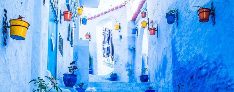 Desayuno. Terminamos de conocer Tánger. Visitaremos el Cabo Espartel y las bonitas grutas de Hércules. Salimos haciaChefchaouen, donde almorzaremos y después visitaremos este tradicional pueblo azul, conocido así por el color de suscasas. Una vez finalizada la visita, salimos hacia Meknes. Llegada, traslado al hotel, cena y alojamiento.